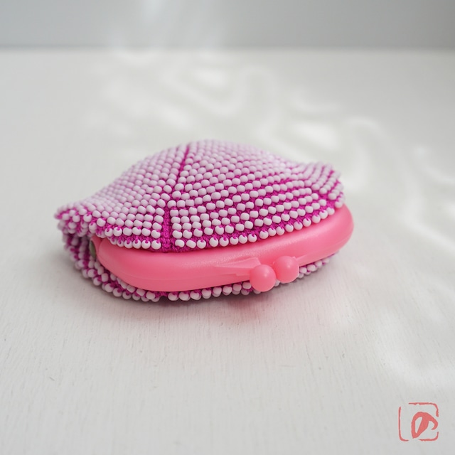 2.5mmガラスビーズをひとつぶづつ全面に編み込んだがま口です。 艶消しビーズ×ビビットなピンク糸の編み地がカワイイです。 開閉ラクラクのプラがま口は小銭入れとしてはもちろん、 メイク小物やアクセサリー入れとして、 またあめちゃん入れとして。細かい身の回り品の収納が可能です。 お出かけにも普段使いにも、カバンにポン!手のひらサイズの小ぶりながま口です。 寸法 幅:約9cm、高さ:8cm(口金含むサイズ);重さ:43g 素材 糸 : 混紡サマーヤーン(ビビットピンク) ビーズ : ガラスビーズ・2.5mm・艶消し淡ピンク 口金 : プラスチック、ピンク、8.5cm、くし型、カンなし 口金固定 : 縫いつけ 編み地 : さらっとしています お手入れ : 水洗い可。もみ洗い、つけおき洗い不可。 ⚁⚀⚄⚄ ばあばに師事、次女M.が制作 ____Ⓑ ばあば_____