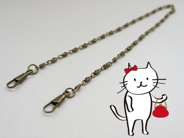 チェーンをつけて、がま口をお出かけ用にバーションアップ♪ しませんか? 「両カン」の表示のある作品に取り付けることができます。 ハンド用・40cm(取り付け部金具含む) 重さ:約10g 色:アンティークゴールド または シルバー 素材:スチール {当ショップでがま口をご購入の方のみ購入可能です} がま口をお買い上げいただいた場合のみ、同梱させていただきます。 ⚠チェーンのみのご購入はできません。