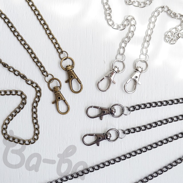 がま口をお出かけ用にバージョンアップ♪ しませんか? 「両カン」の表示のある作品に取り付けることができます。 寸法 長さ:約40、60、118cm(取り付け部金具含む) ☆上記以外にご希望長さにカットサービスも致します。ご購入の際は長さをご連絡ください☆ 価格:ハンド用40cm ¥180 ショルダー用60cm ¥200 ポシェット用120cm ¥280 好きな長さにカット ¥280 色:メタルブラック 素材:スチール {当ショップでがま口をご購入の方のみ購入可能です} がま口をお買い上げいただいた場合のみ、同梱させていただきます。 ⚠チェーンのみのご購入はできません。