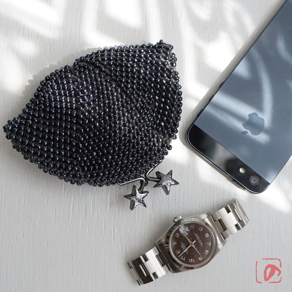 ばあば作☆☆総ガラスビーズのがま口(鏡鉄星・1739)