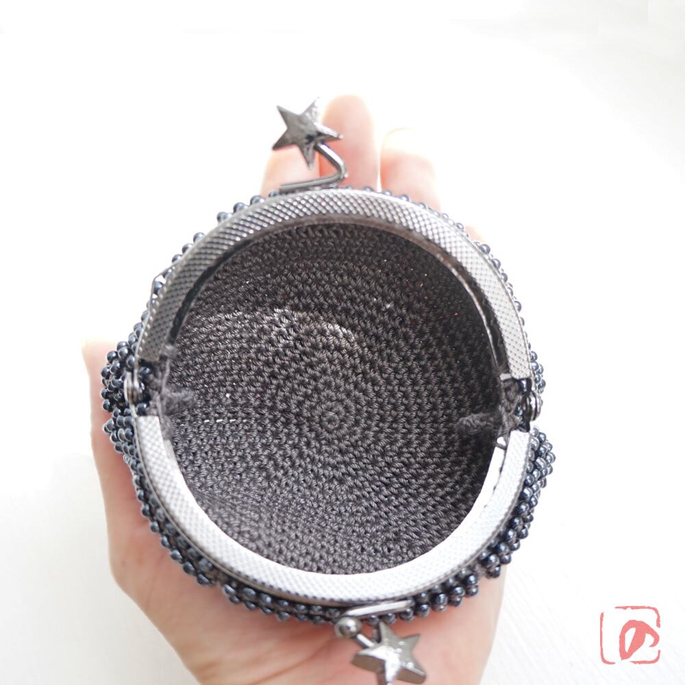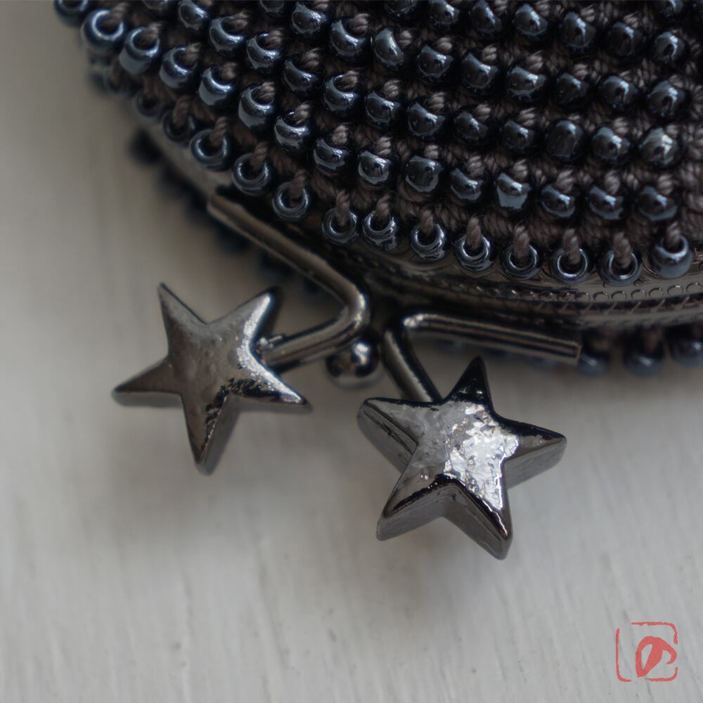 口金 : メタルブラック、星つまみ、8.5cm、丸型、片カン