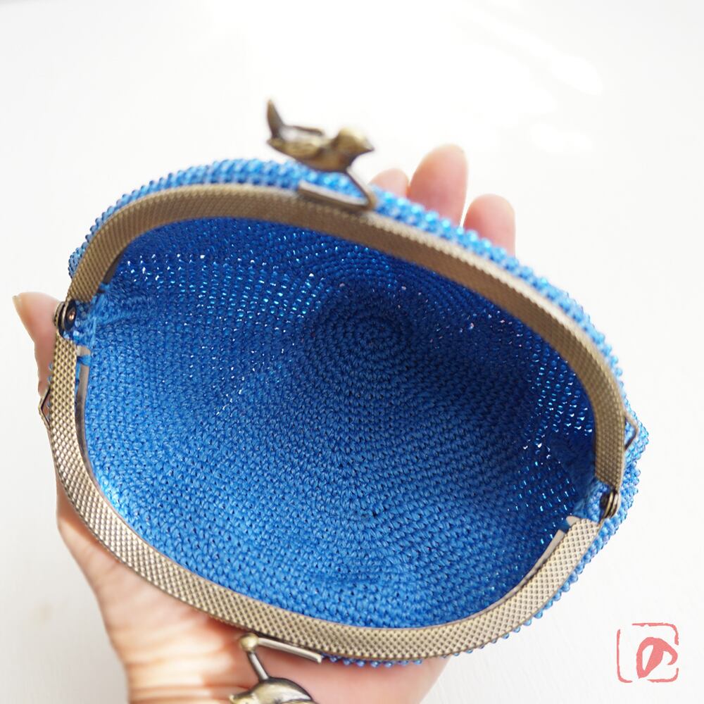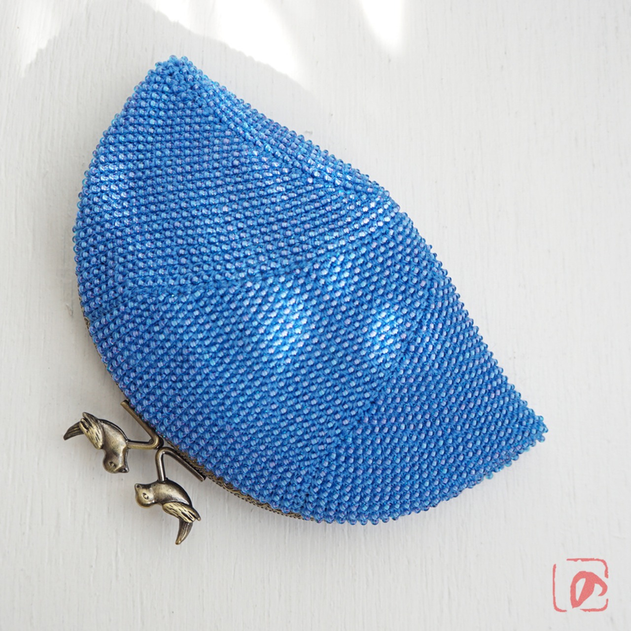 ばあば作 ✧ シードビーズのさらに大きめがま口(sininen lintu・2078)