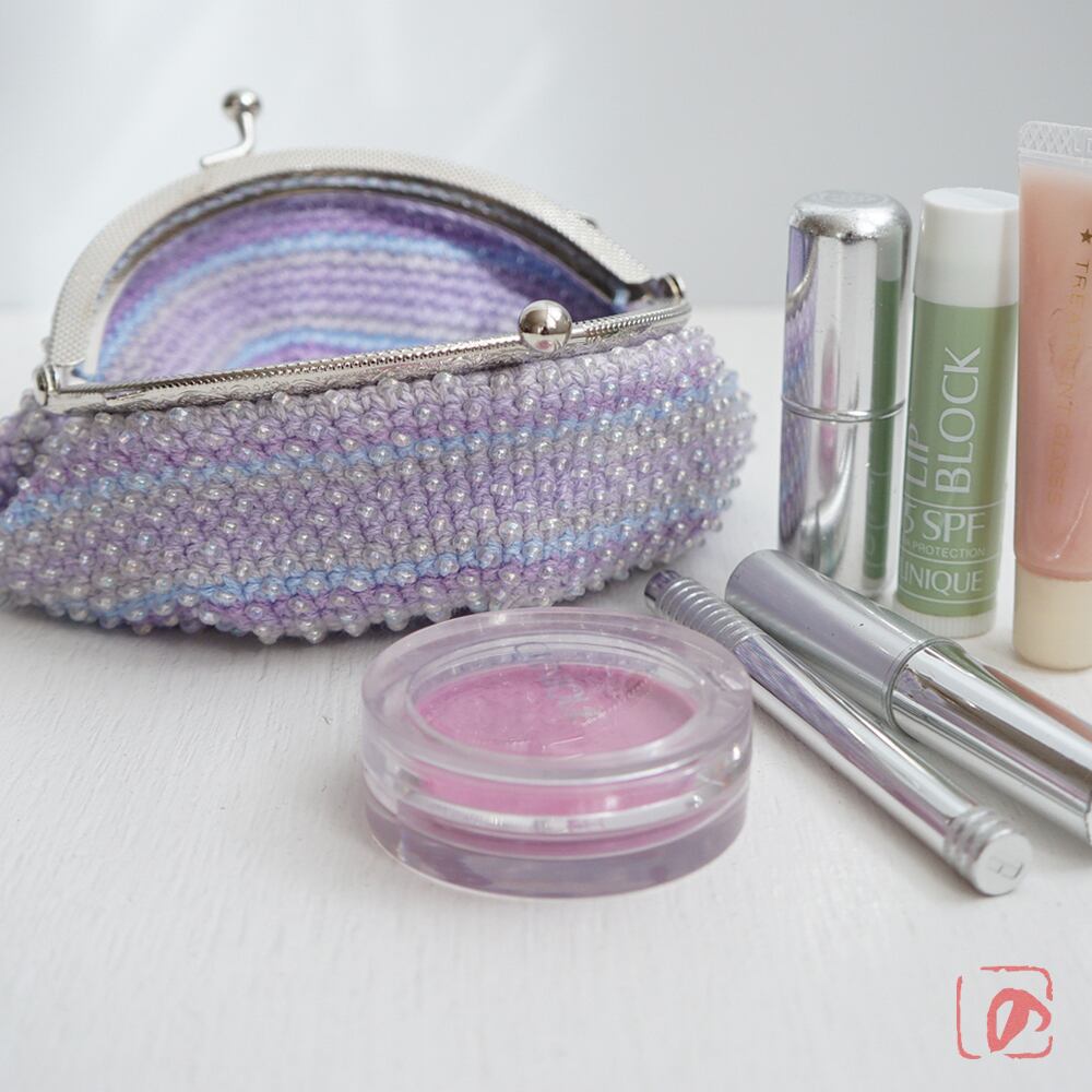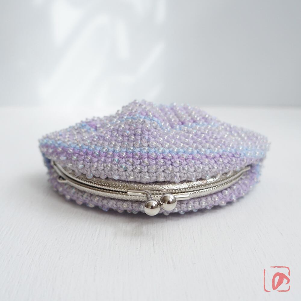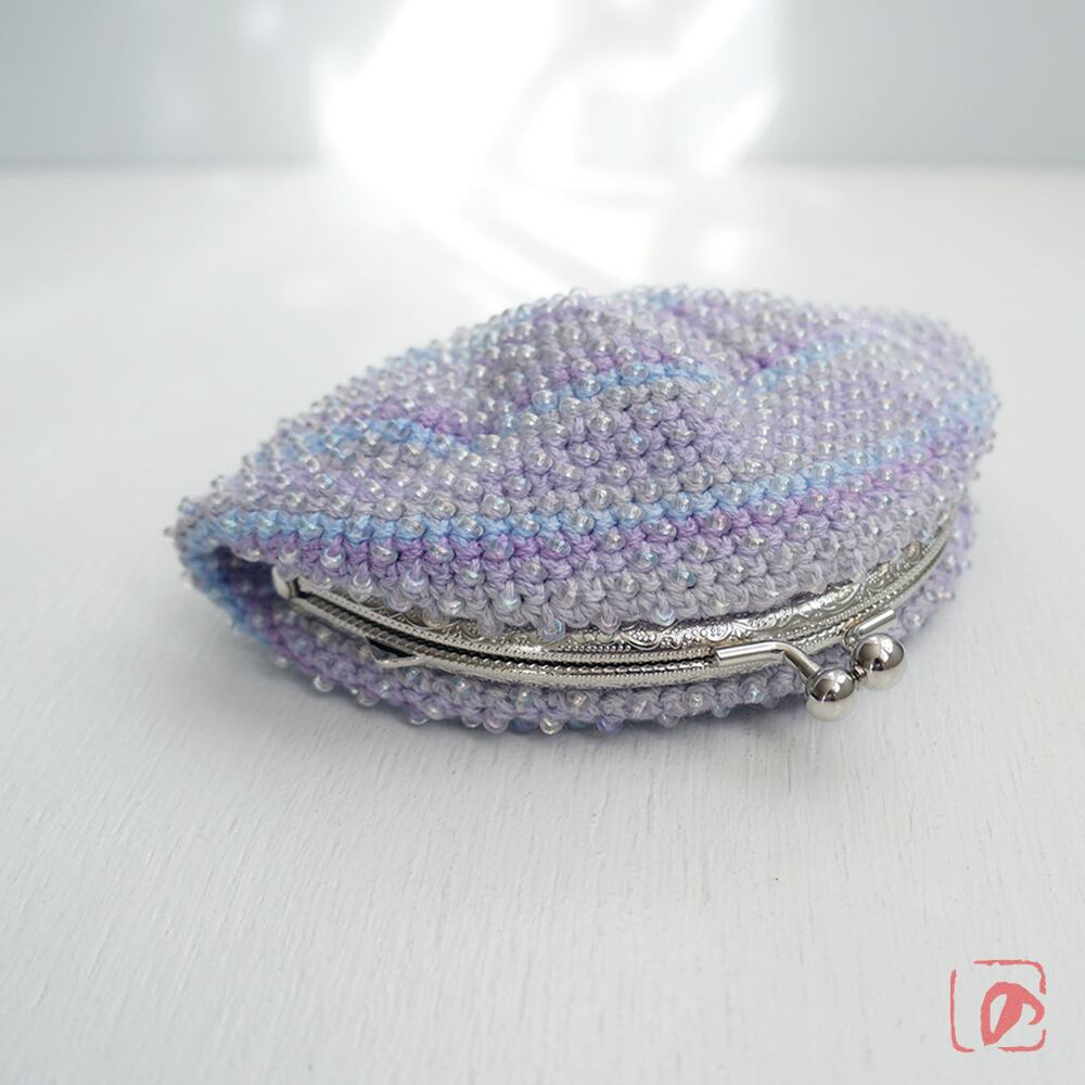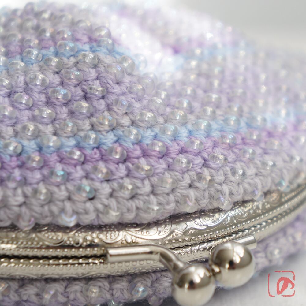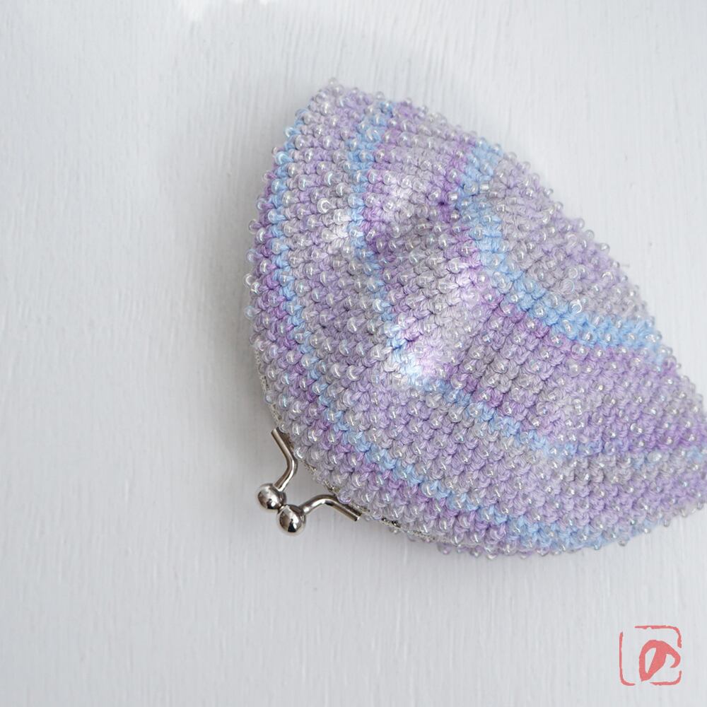 一目飛ばしにビーズを編み込んだ、つぶつぶ感がカワイイがま口。