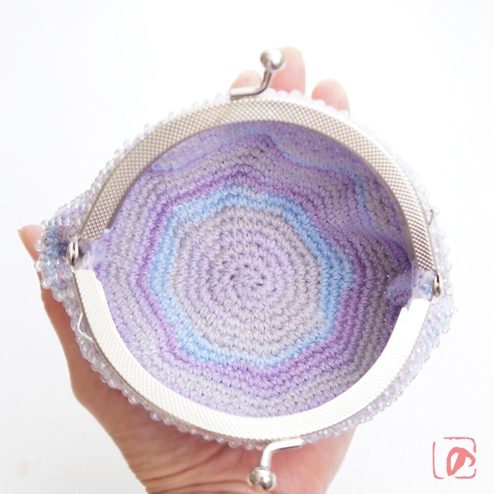 編みがま口×ビーズがま口のハイブリットつぶつぶビーズがま口です。