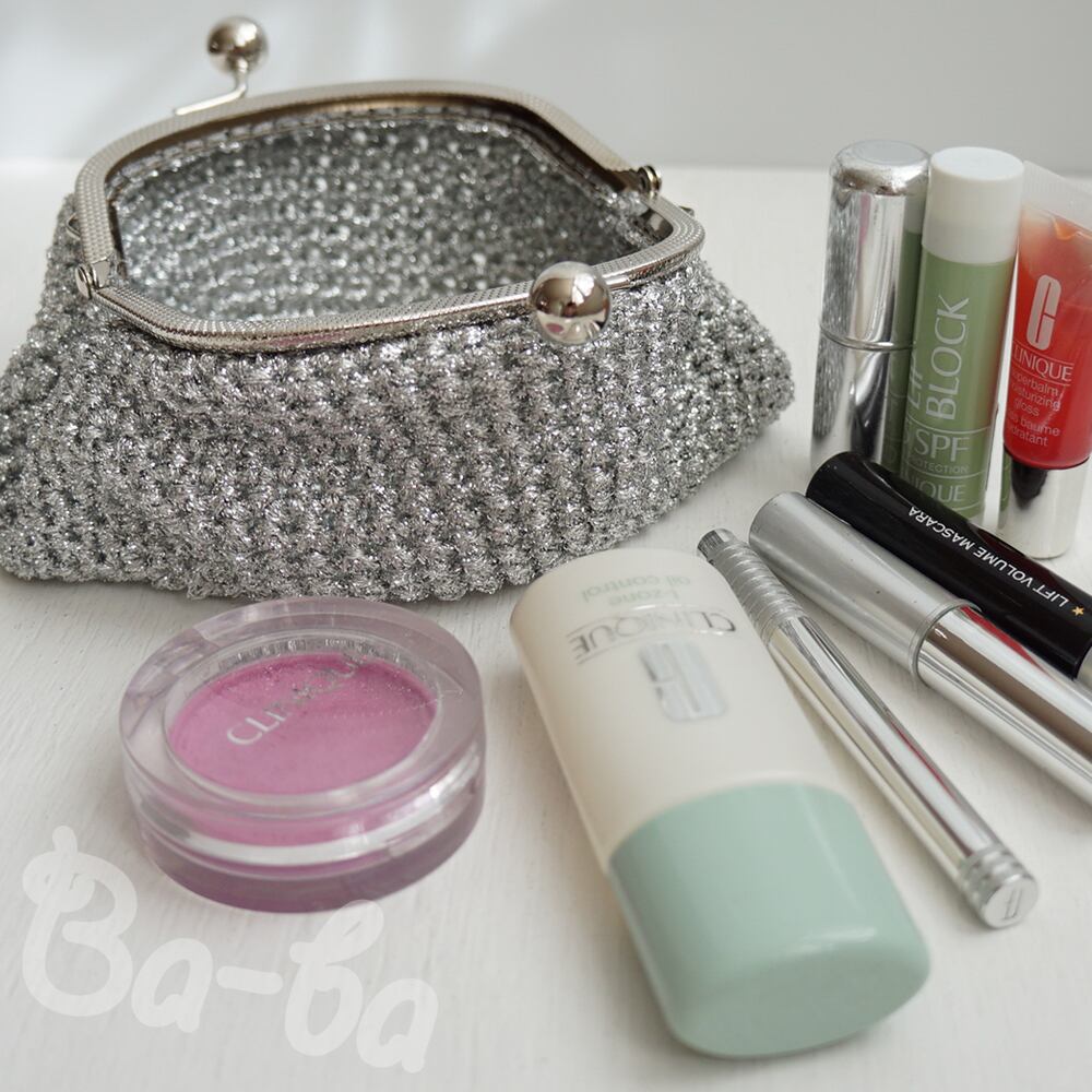 シルバー口金を組み合わせて、全体の色を統一しました。かわいく仕上げました。
