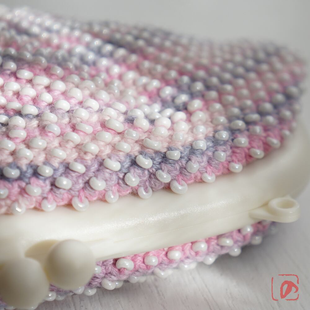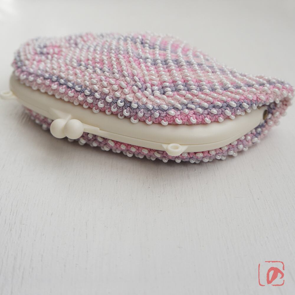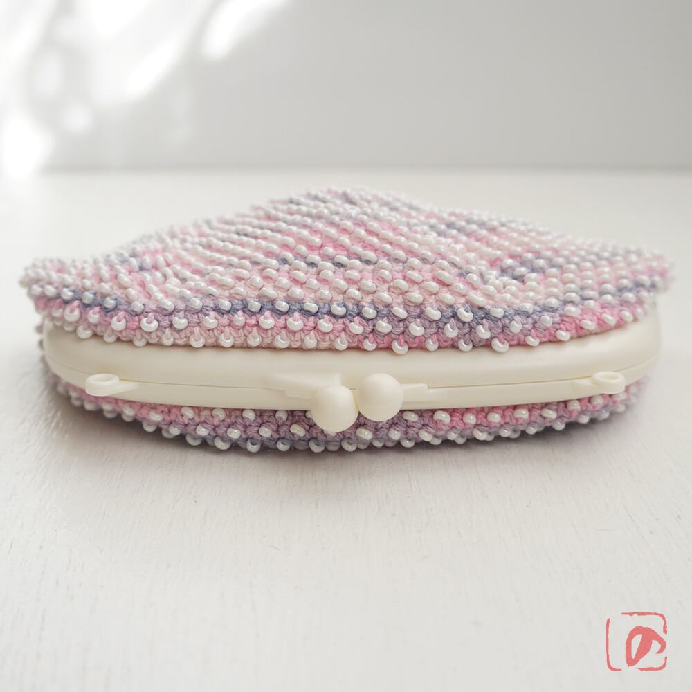一目飛ばしにビーズを編み込んだ、つぶつぶ感がカワイイがま口。