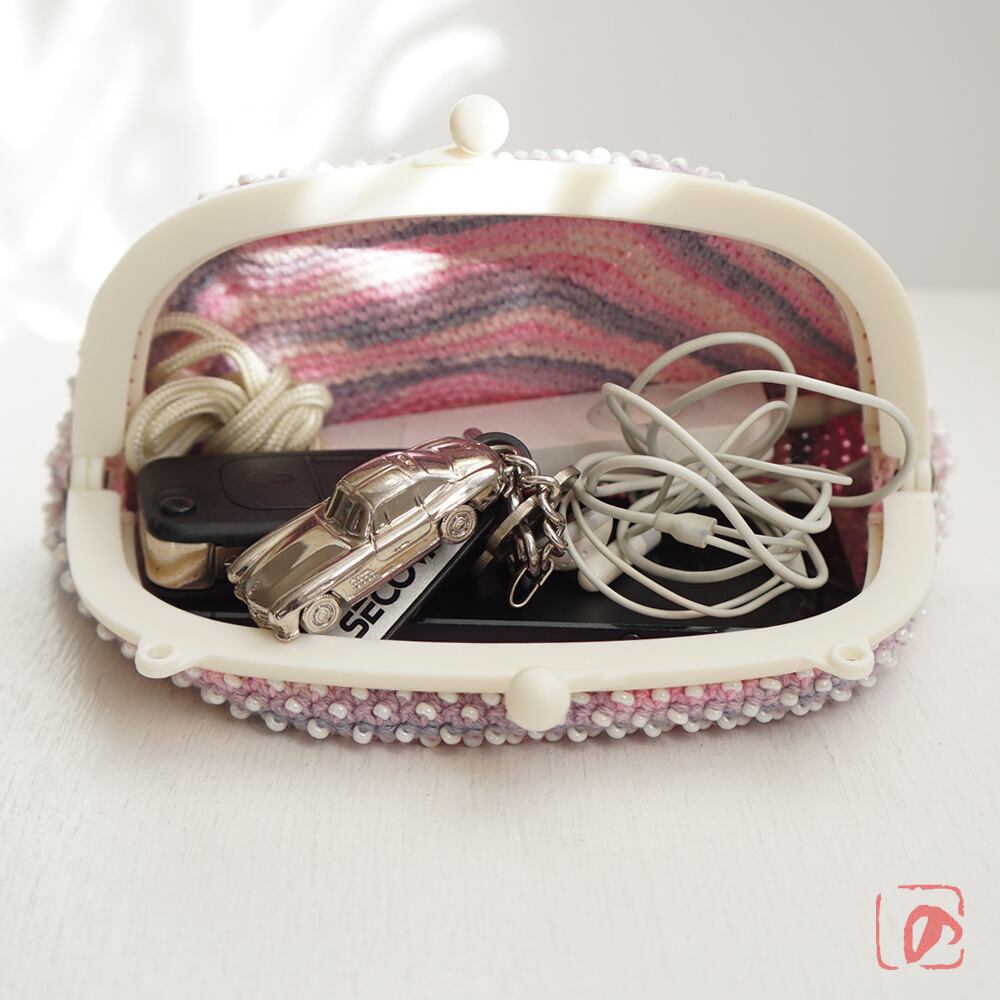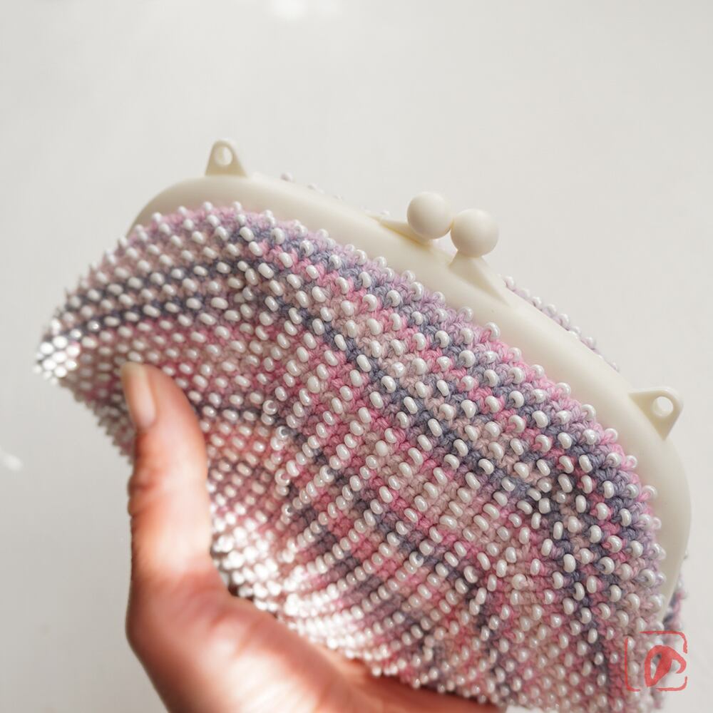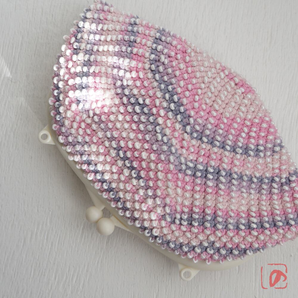編みがま口×ビーズがま口のハイブリットつぶつぶビーズがま口です。
