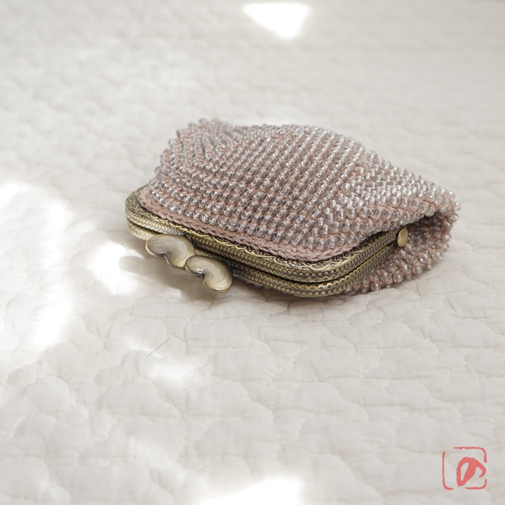 ばあば♡♡総ガラスビーズのスクエアがま口(pâle beige・2127)