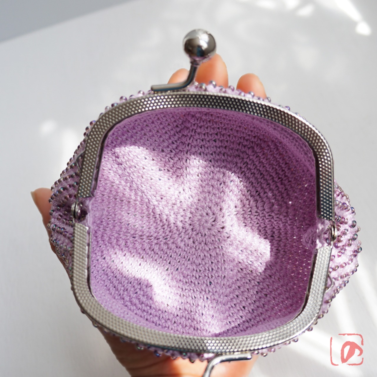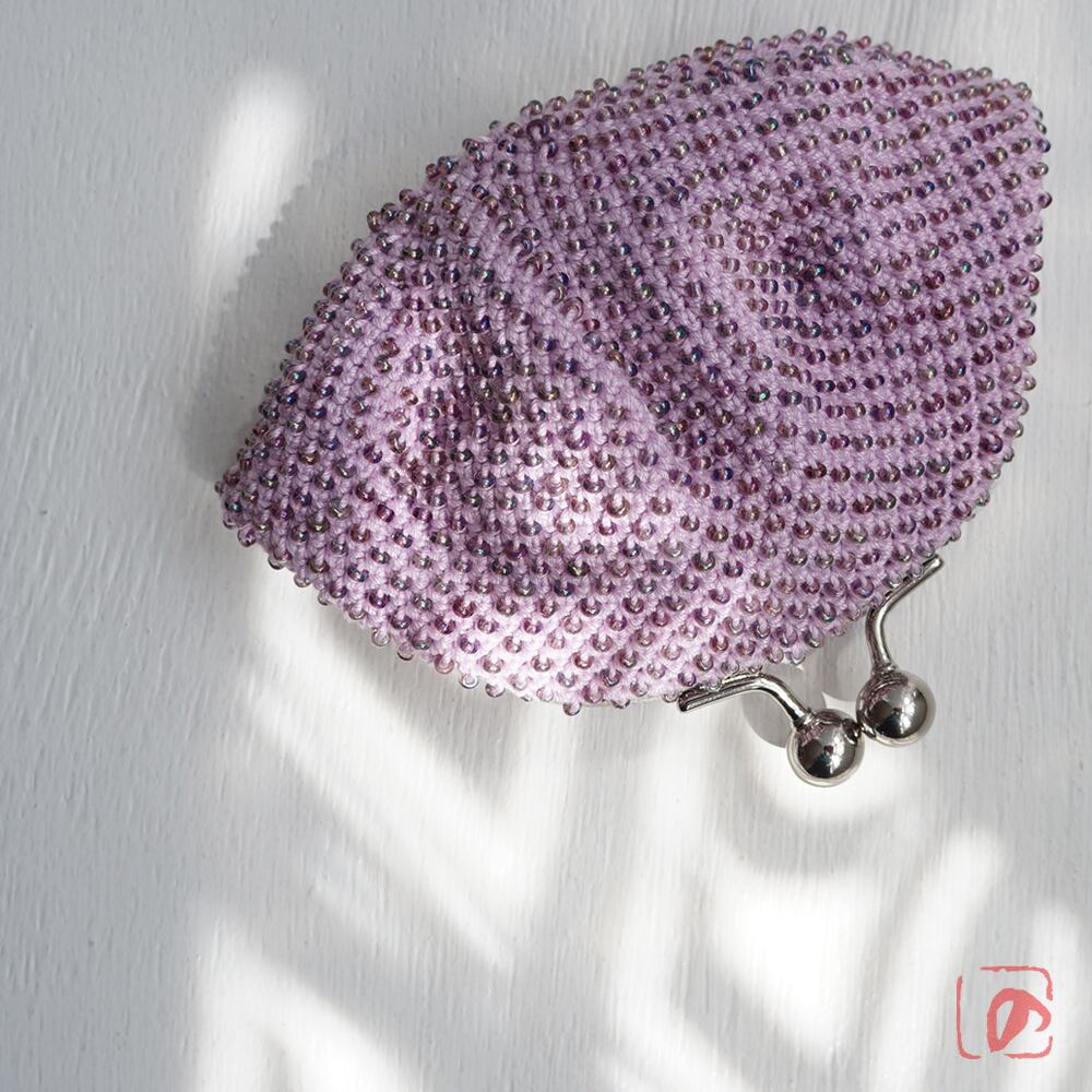 一目飛ばしにビーズを編み込んだ、つぶつぶ感がカワイイがま口。