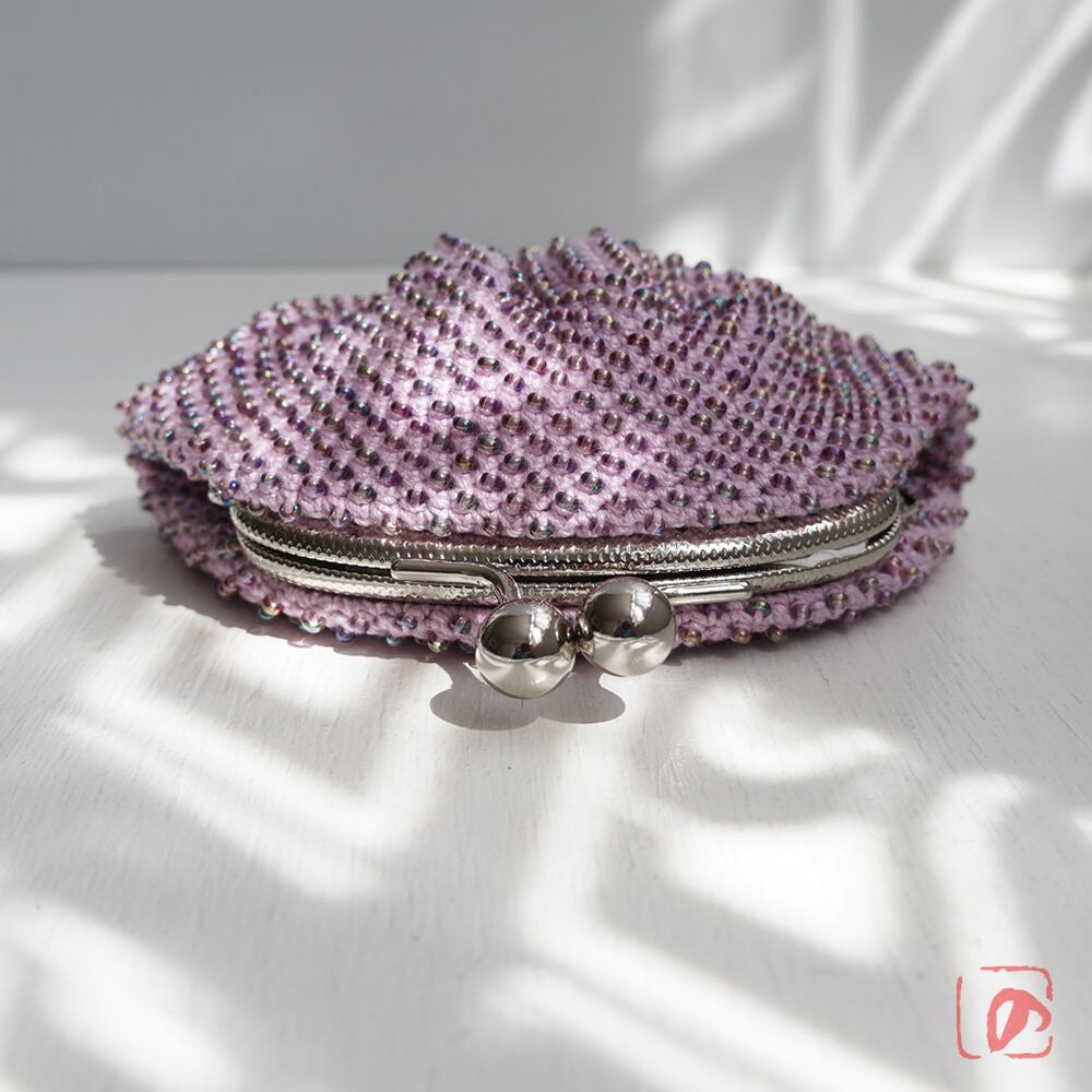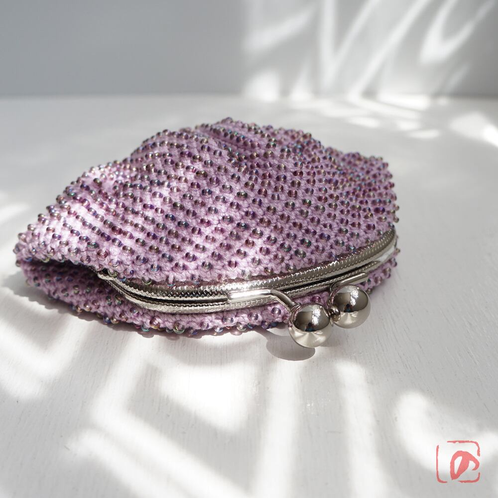 編みがま口×ビーズがま口のハイブリットつぶつぶビーズがま口です。