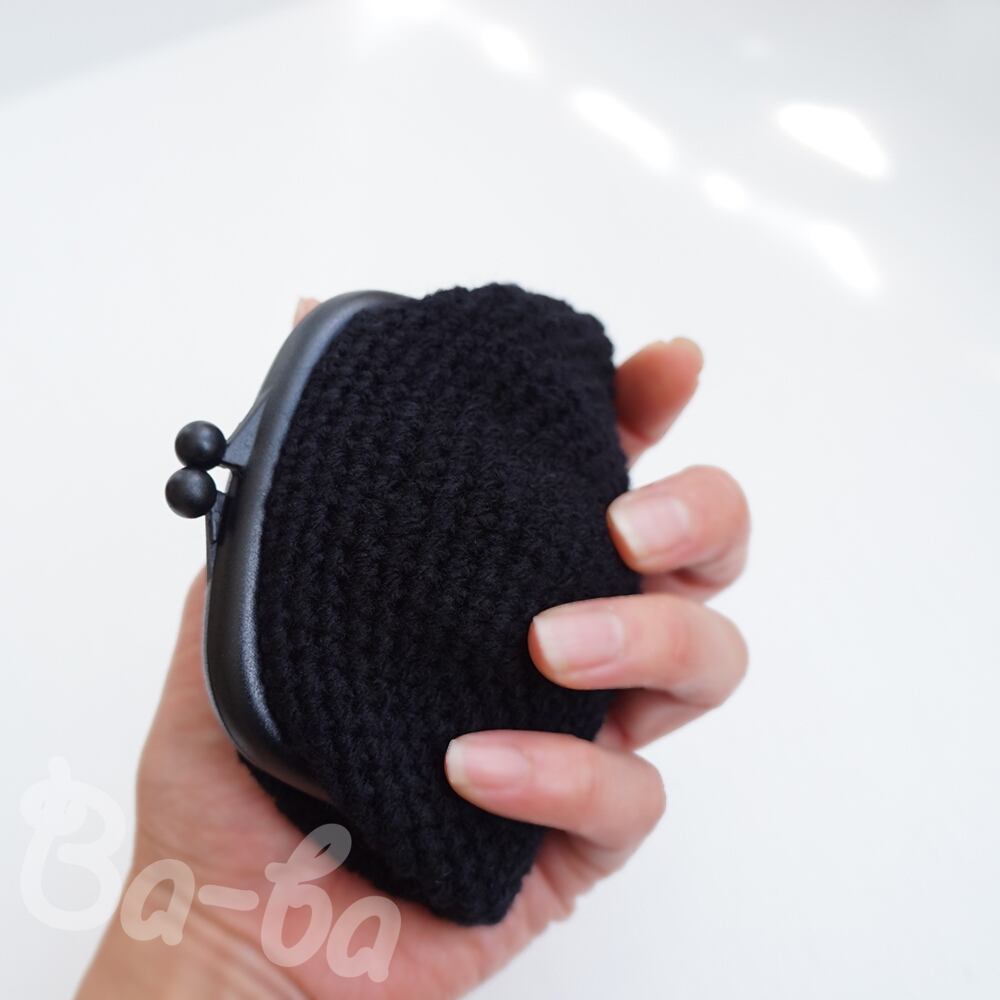 最後まで大事に使いたい、残り糸の編みがま口です。