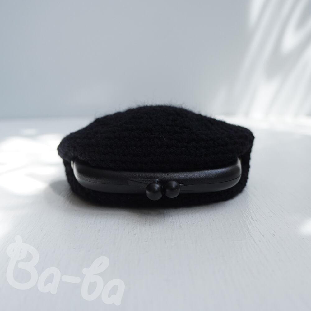黒い糸を細編みでふんわり編み上げ、