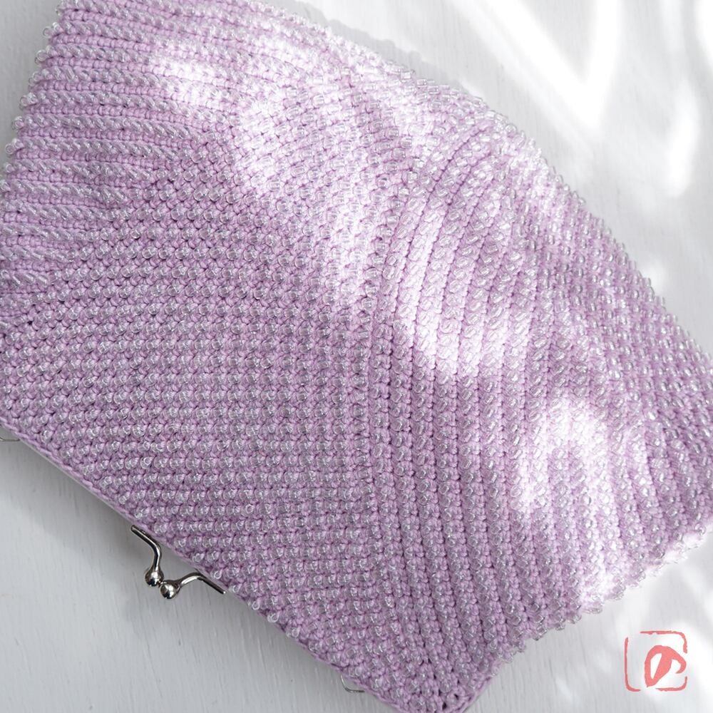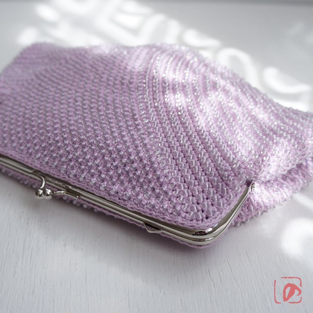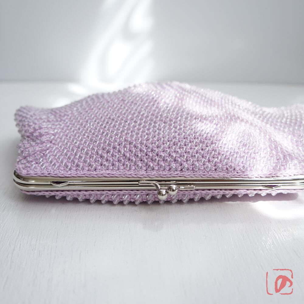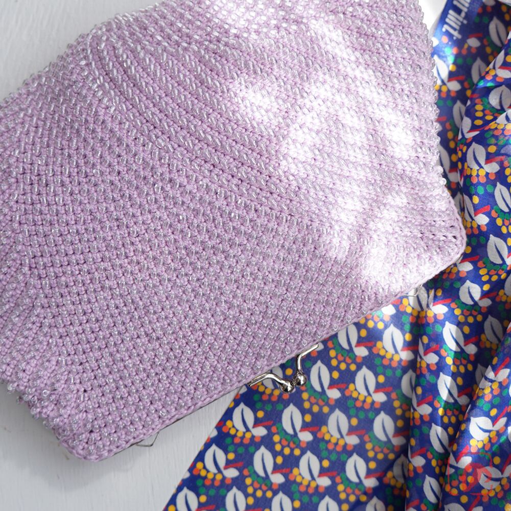 一目飛ばしにビーズを編み込んだ、つぶつぶ感がカワイイがま口。