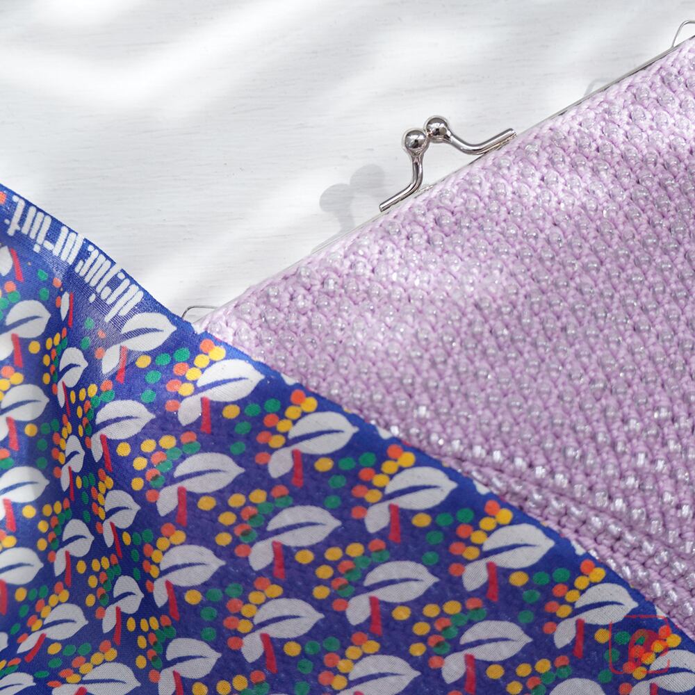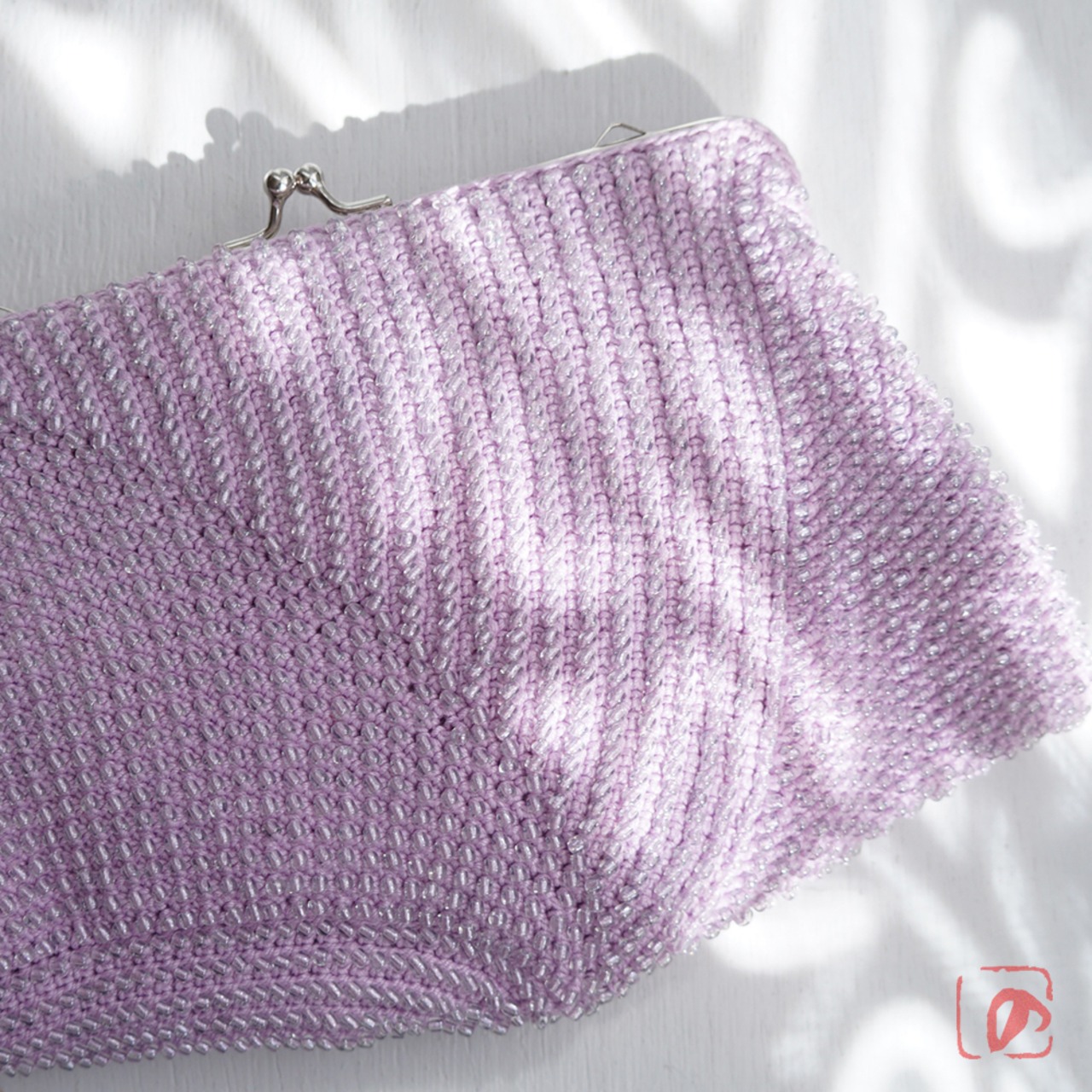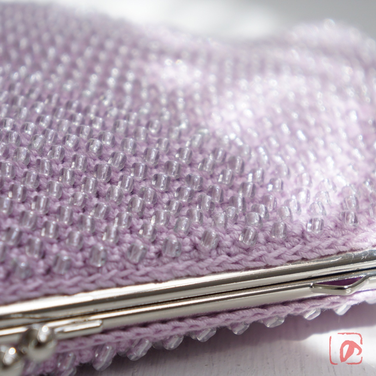 一目飛ばしにビーズを編み込んだ、つぶつぶ感がカワイイがま口。