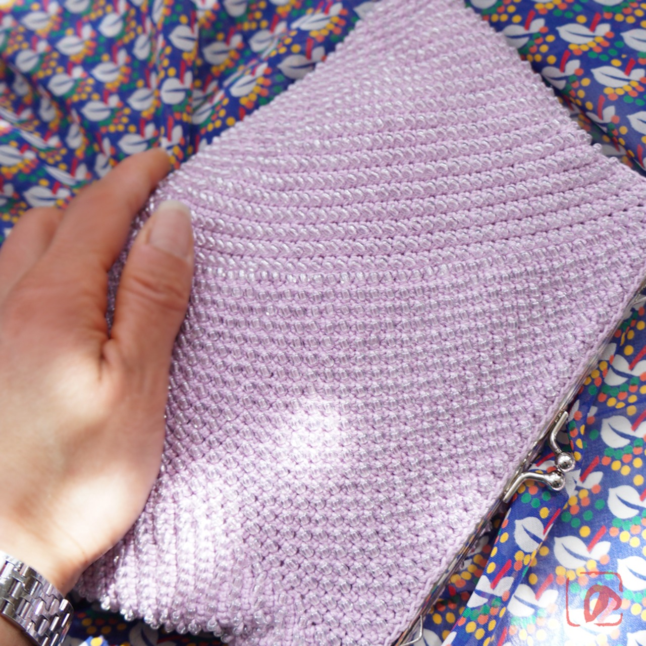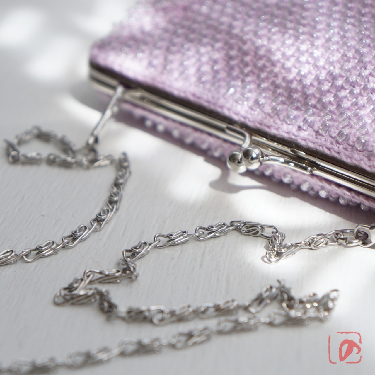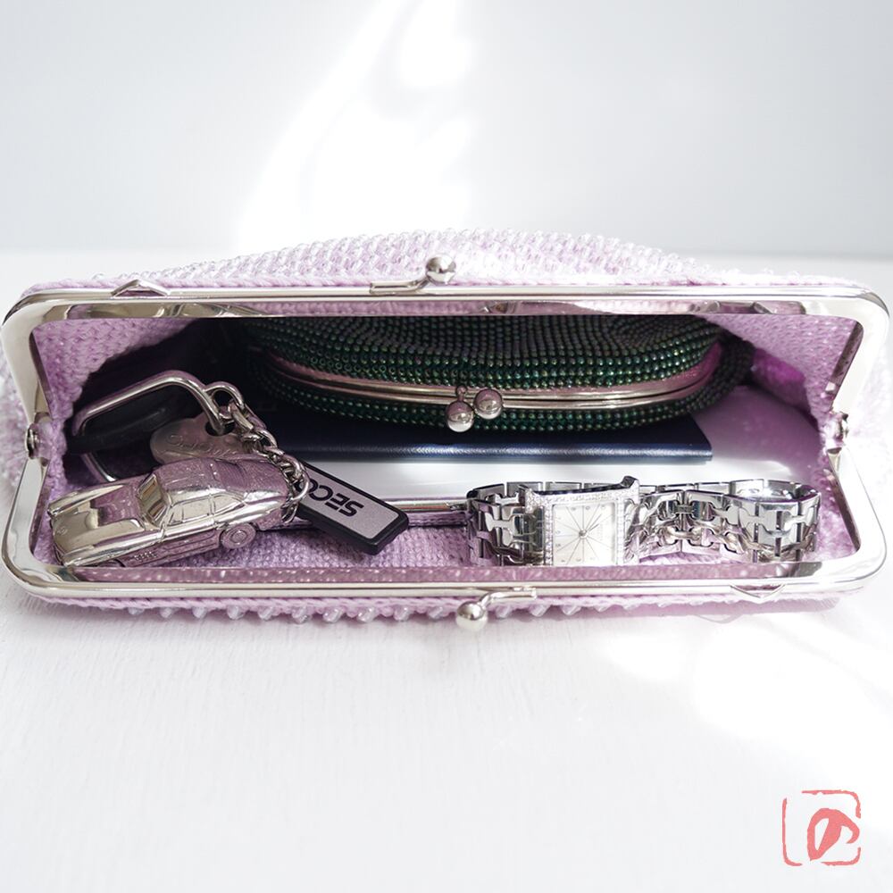ばあば ⁛ つぶつぶガラスビーズのスクエアバッグ(曙藤・2132)