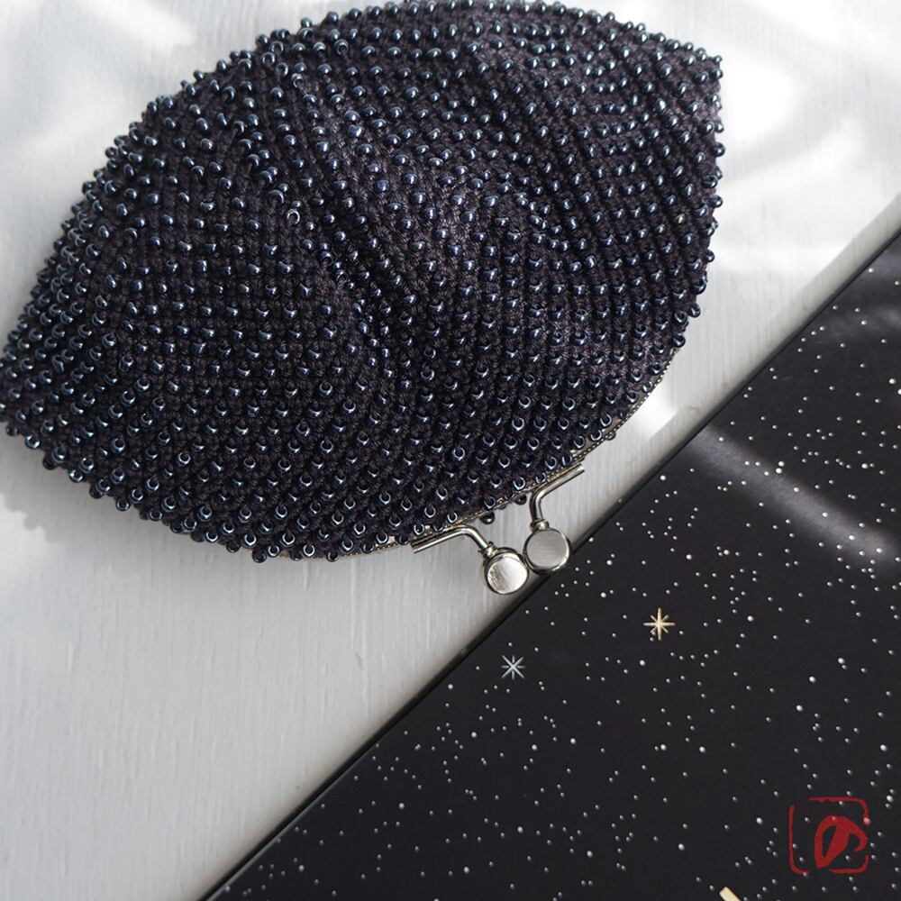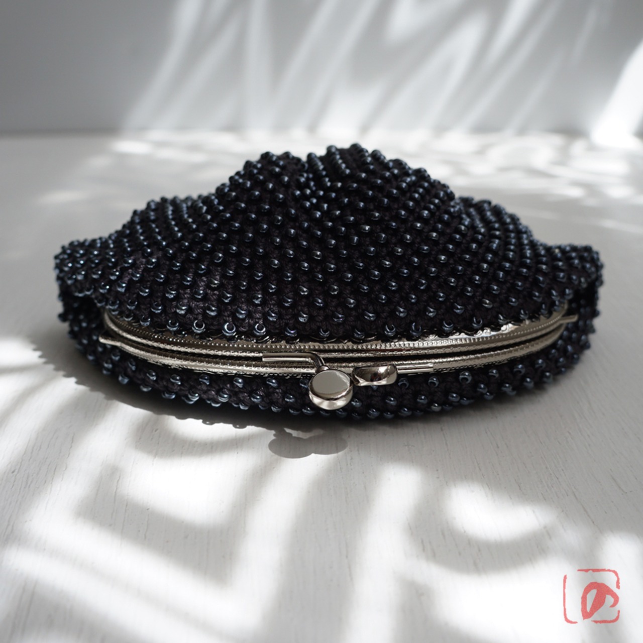 ばあば ⁛ つぶつぶガラスビーズのさらに大き目がま口(der schwarze Stern・2145)