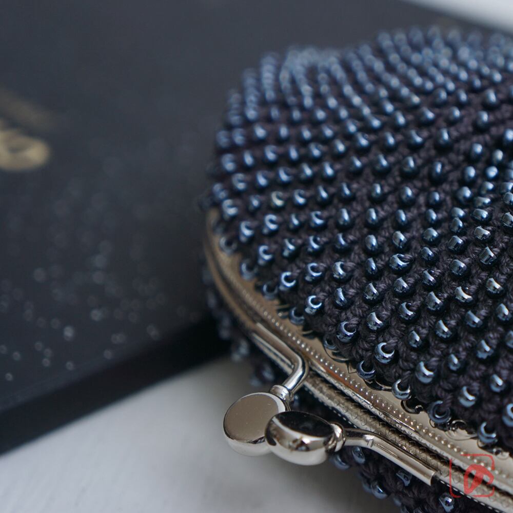 編みがま口×ビーズがま口のハイブリットつぶつぶビーズがま口です。