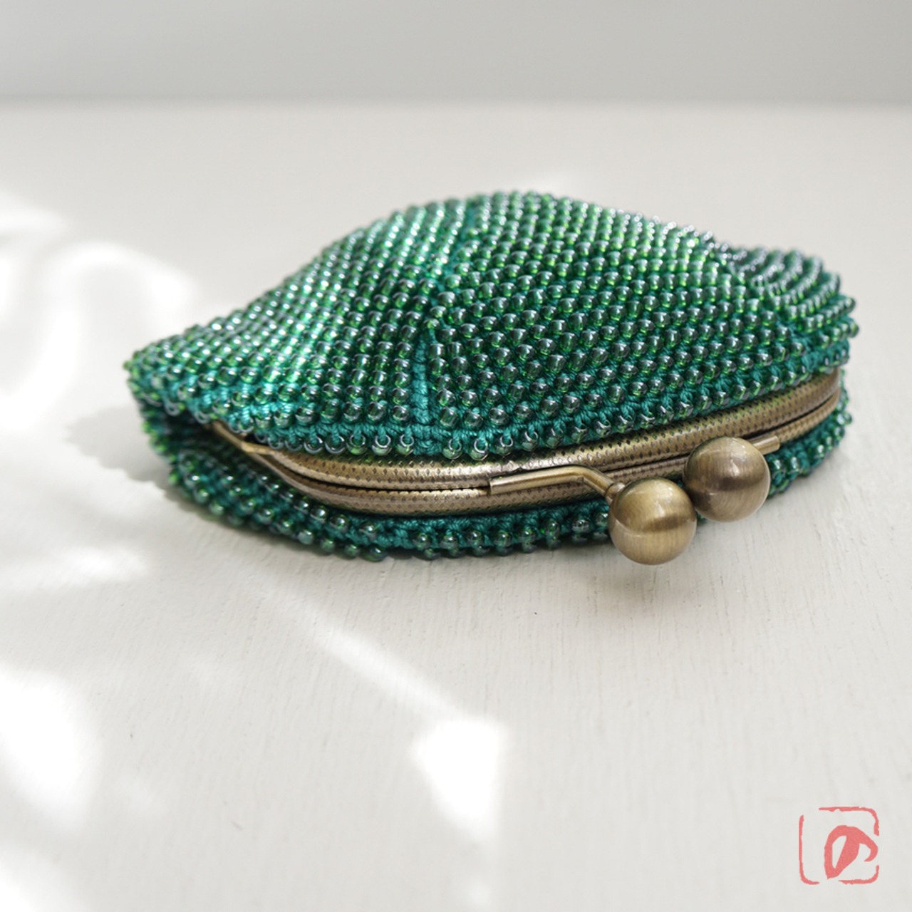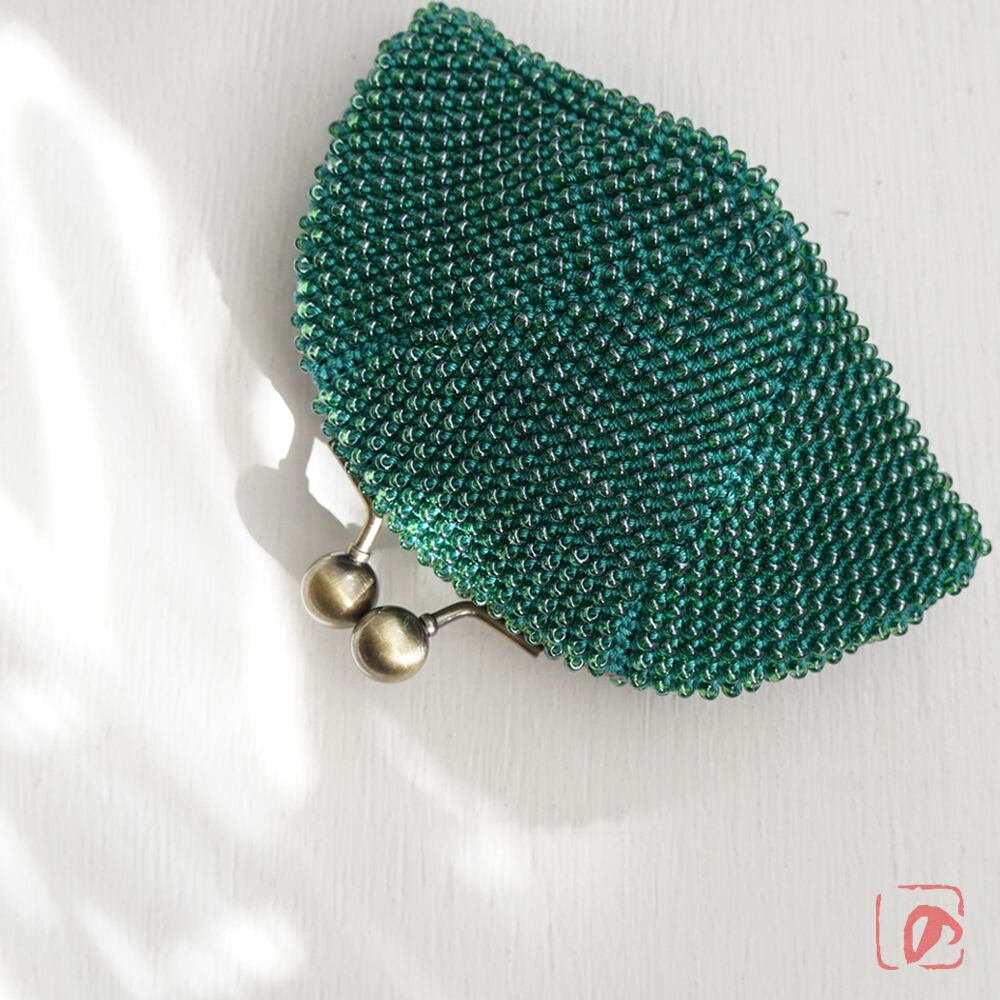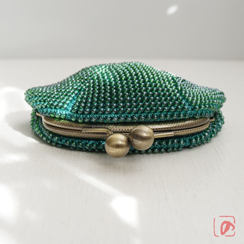 ばあば、ガラスビーズの大きめがま口(beryl・2120)
