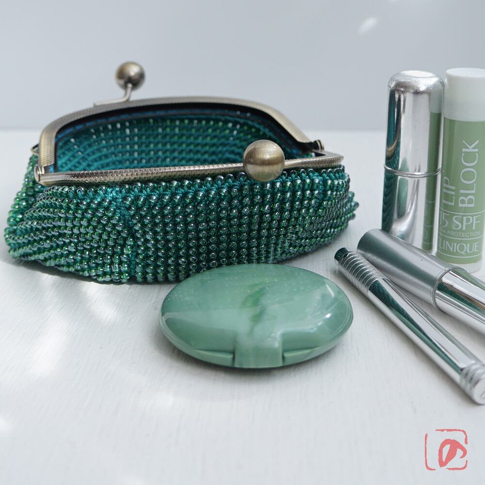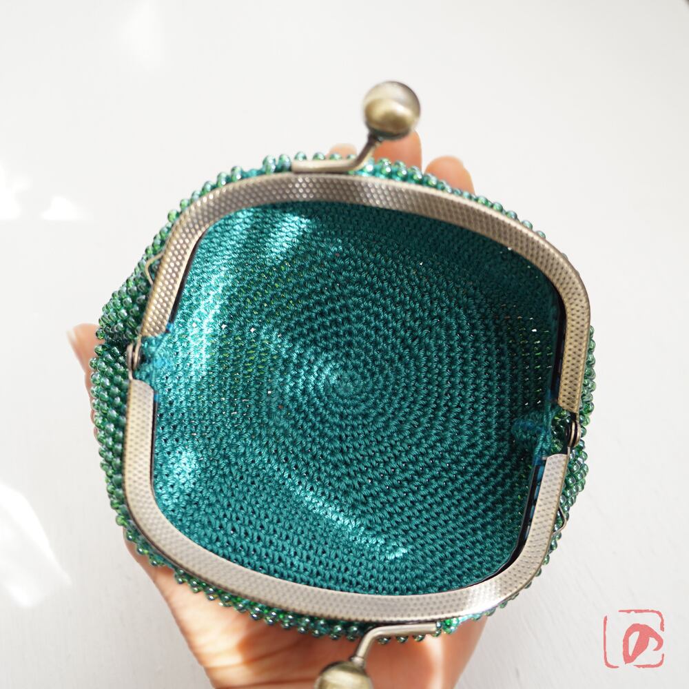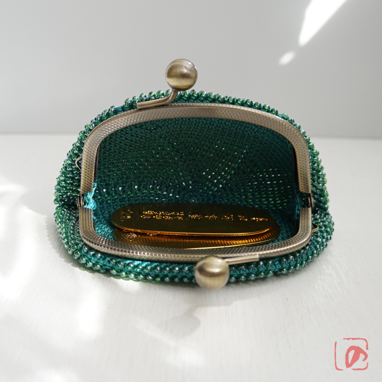 ばあば、ガラスビーズの大きめがま口(beryl・2120)