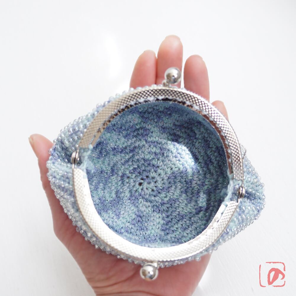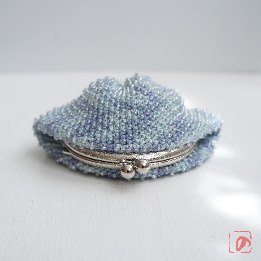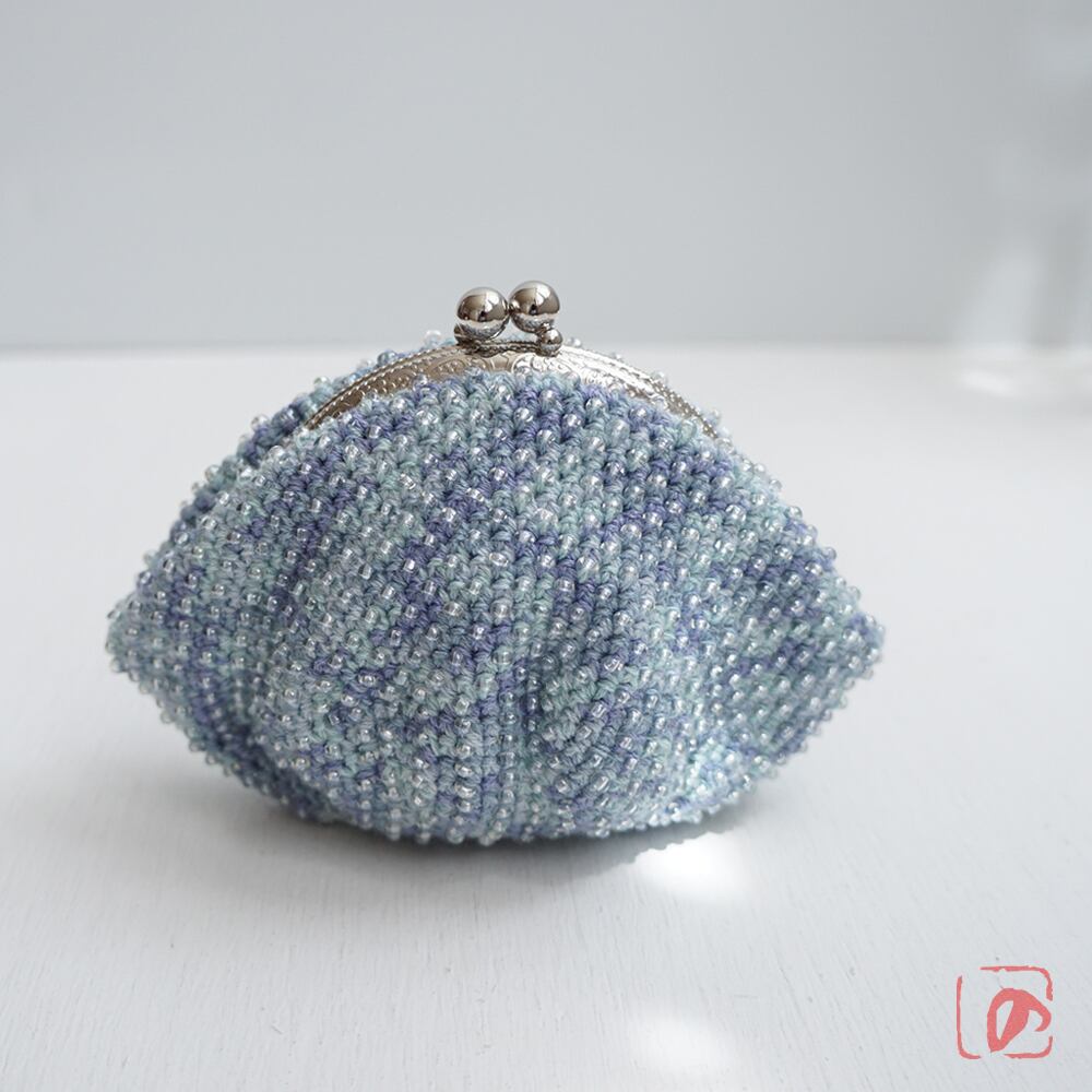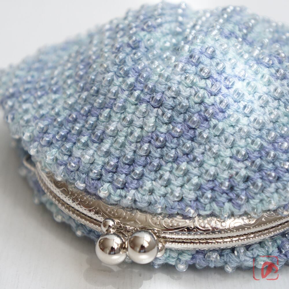 編みがま口×ビーズがま口のハイブリットつぶつぶビーズがま口です。