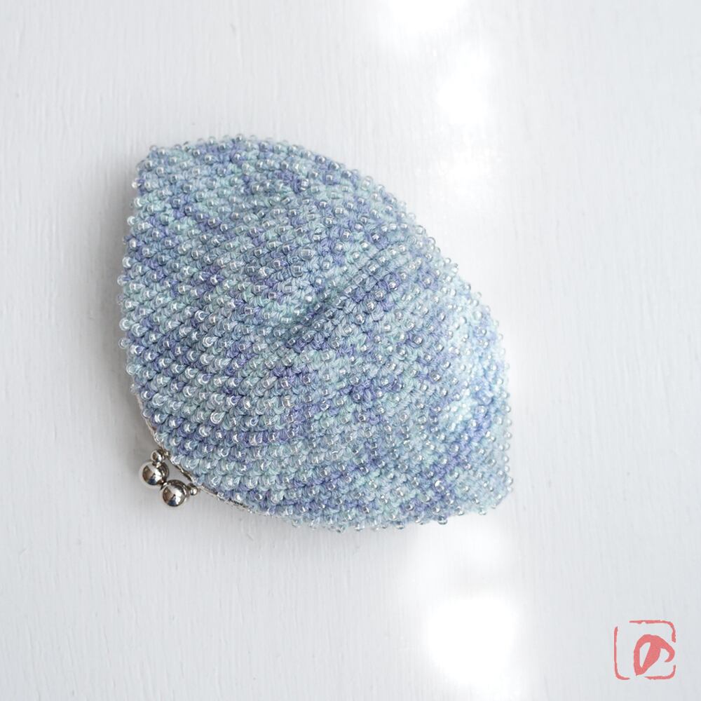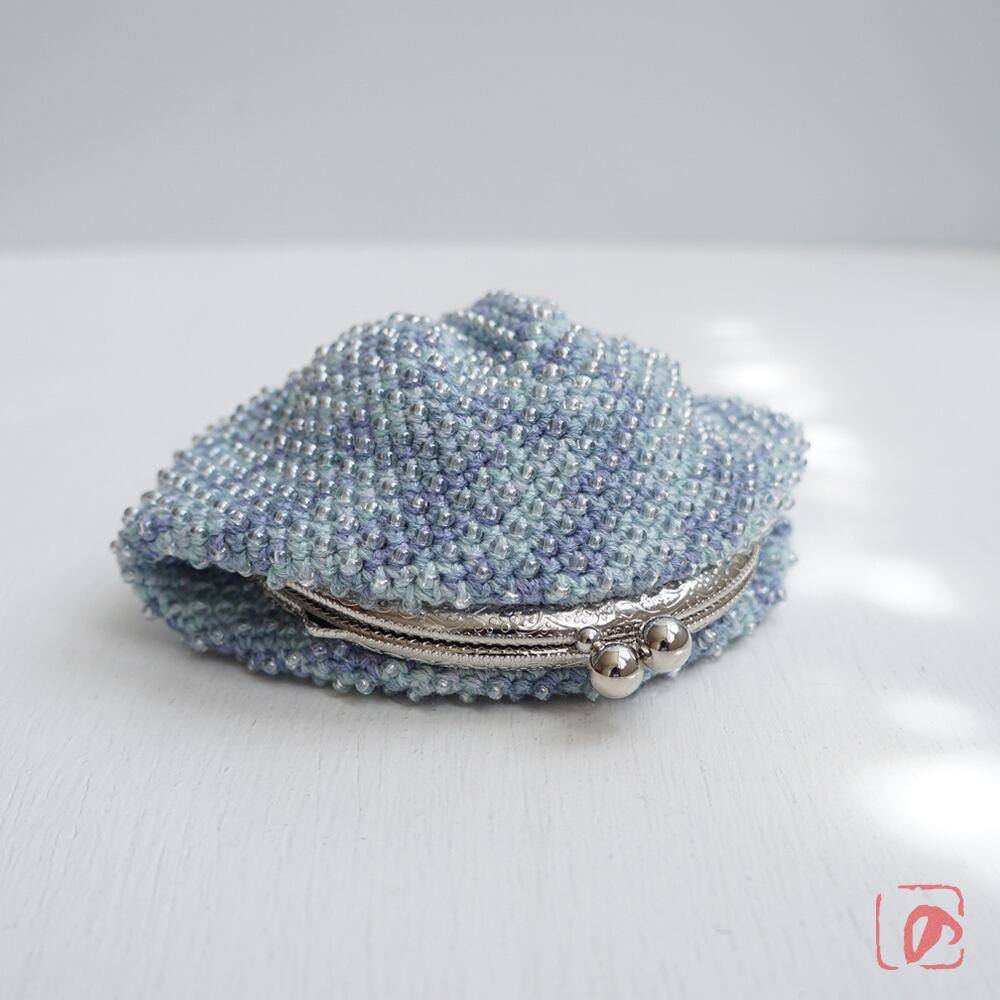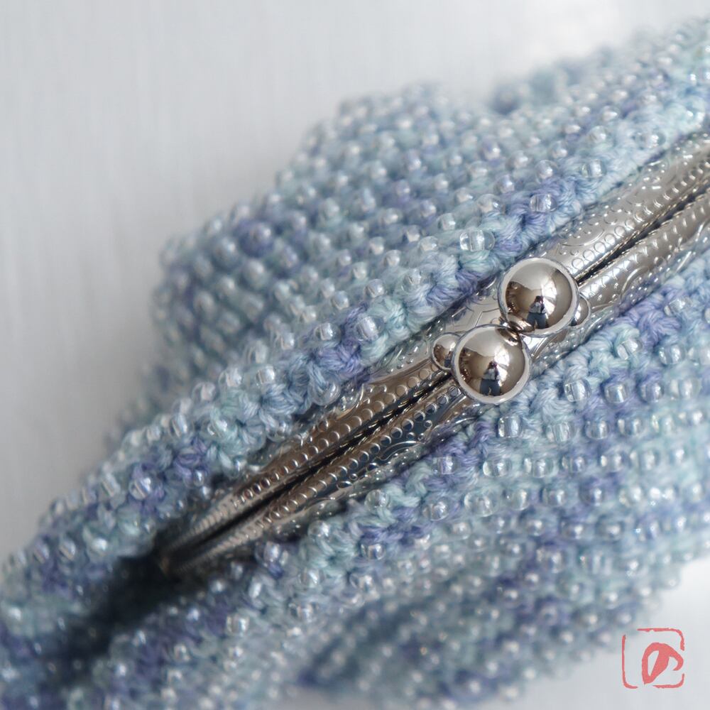 一目飛ばしにビーズを編み込んだ、つぶつぶ感がカワイイがま口。