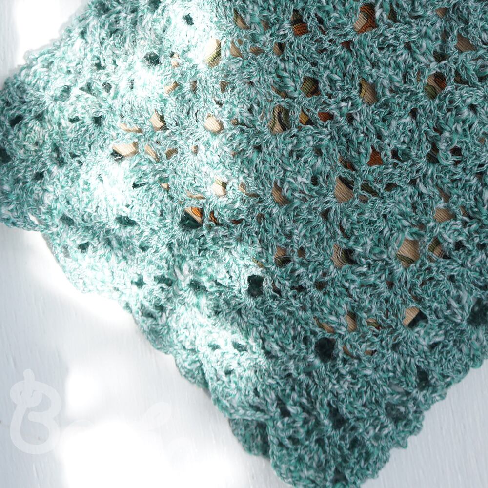極細の混紡サマーヤーンを波模様のような透かし編みにしました。