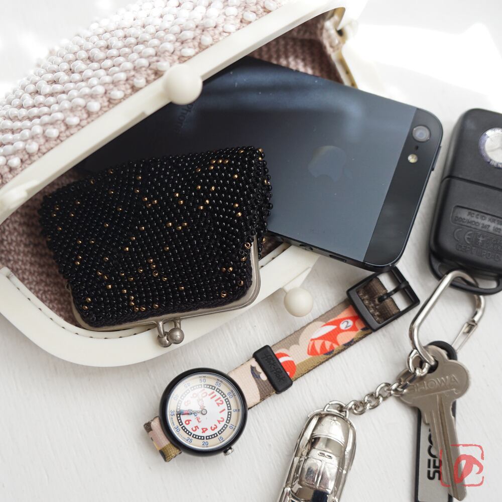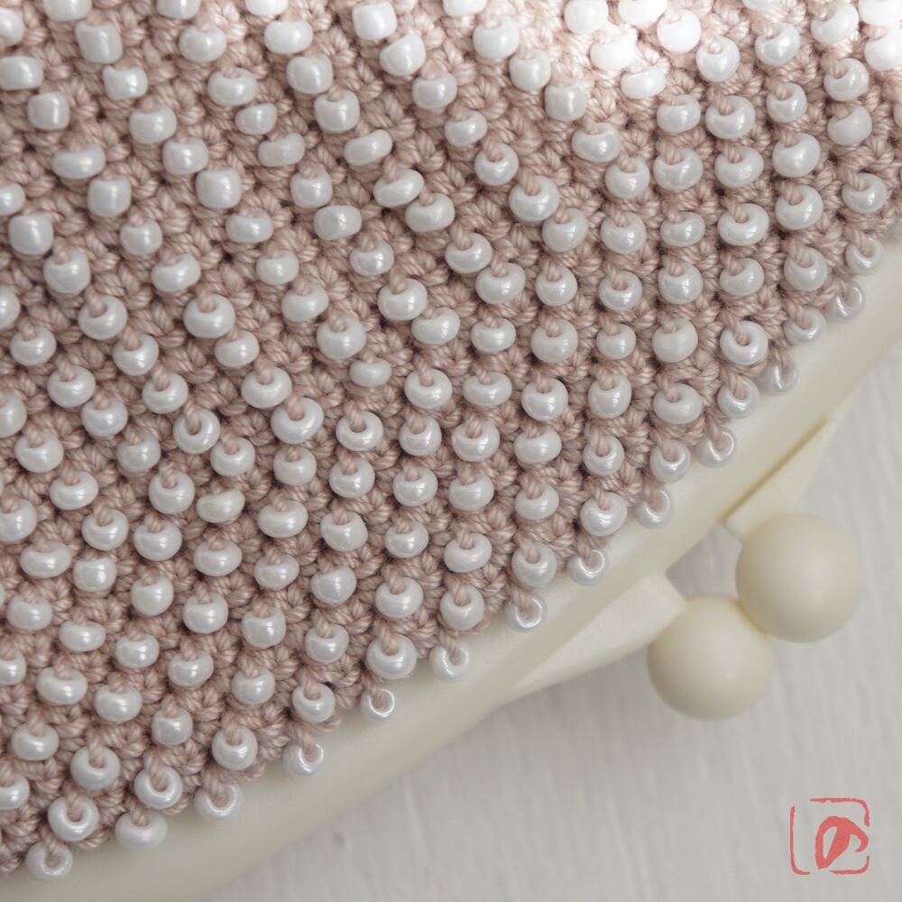 一目飛ばしにビーズを編み込んだ、つぶつぶ感がカワイイがま口。