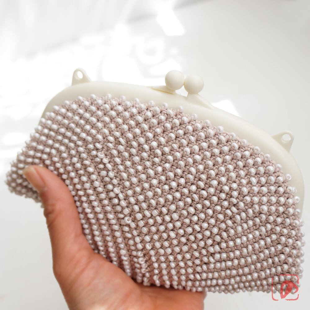 編みがま口×ビーズがま口のハイブリットつぶつぶビーズがま口です。