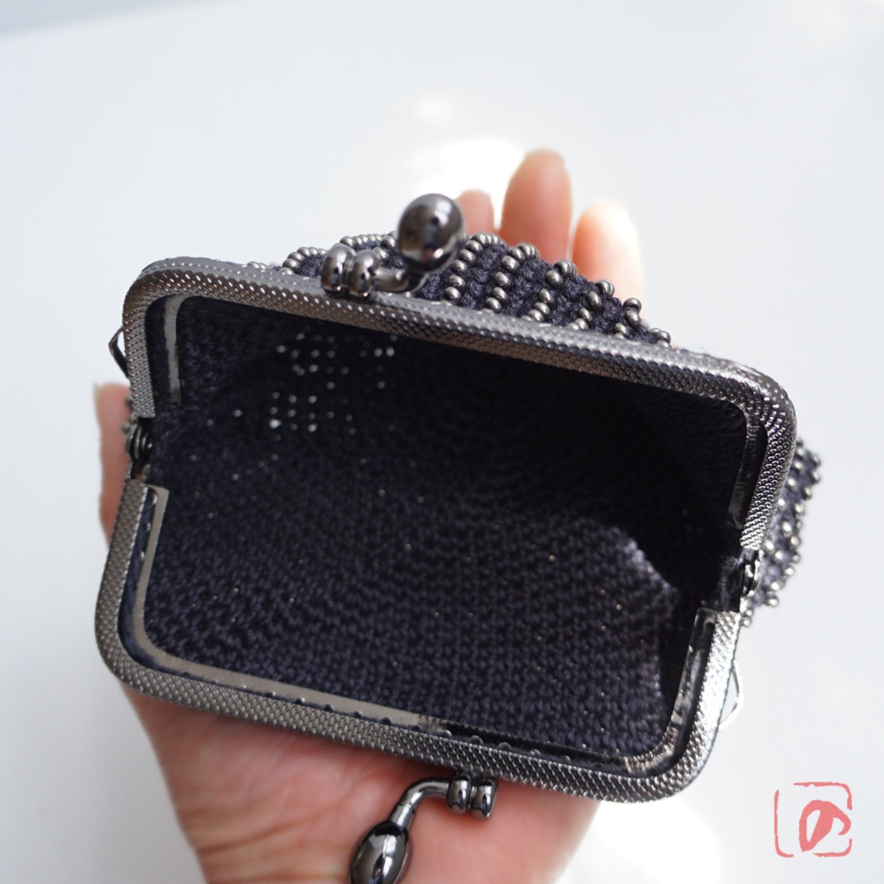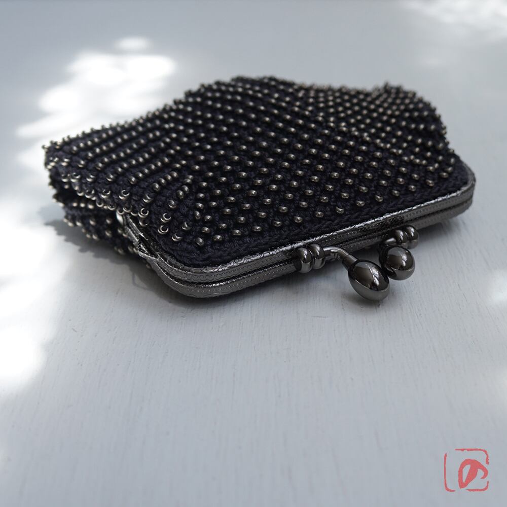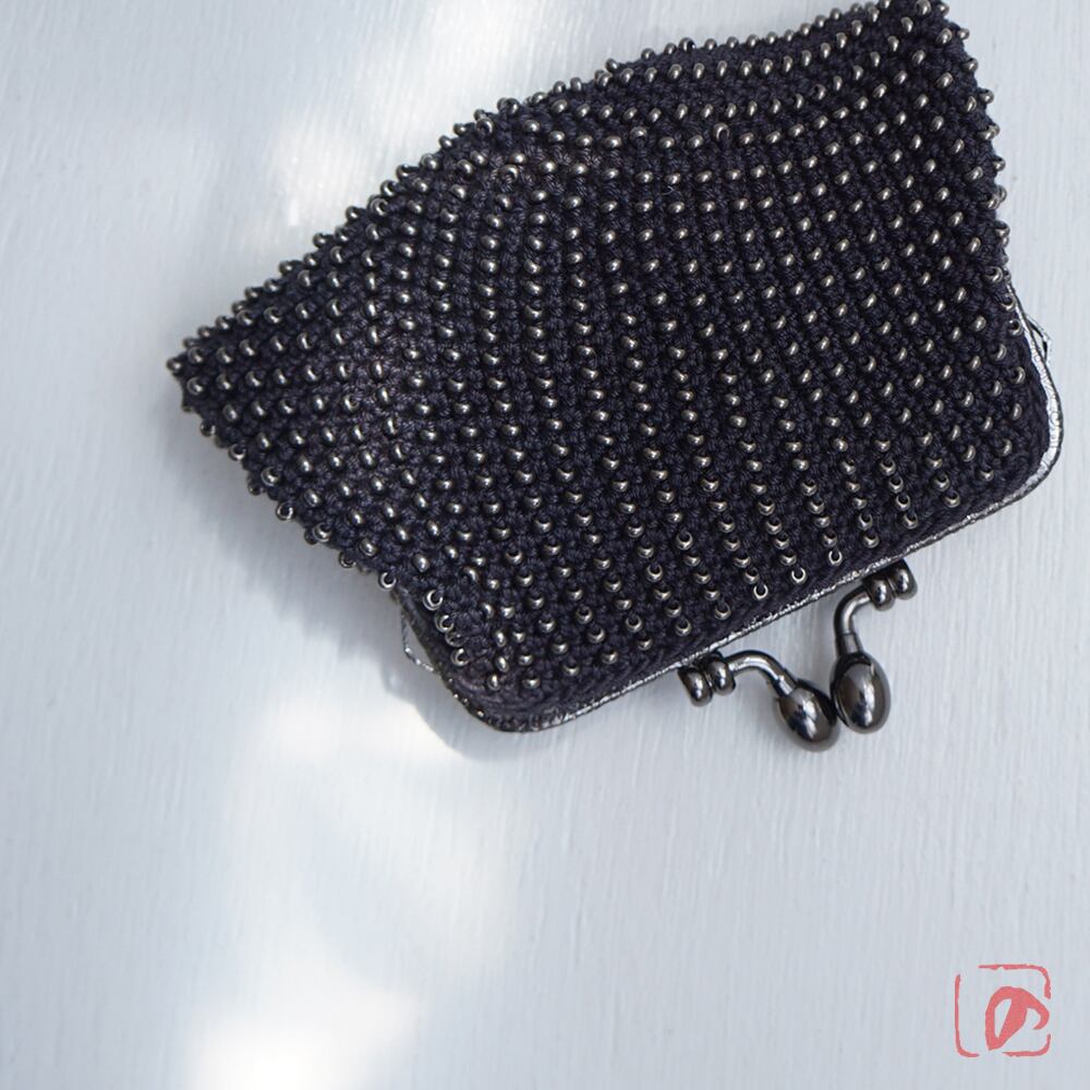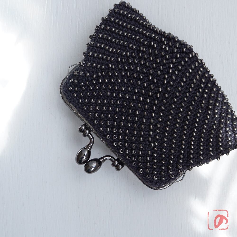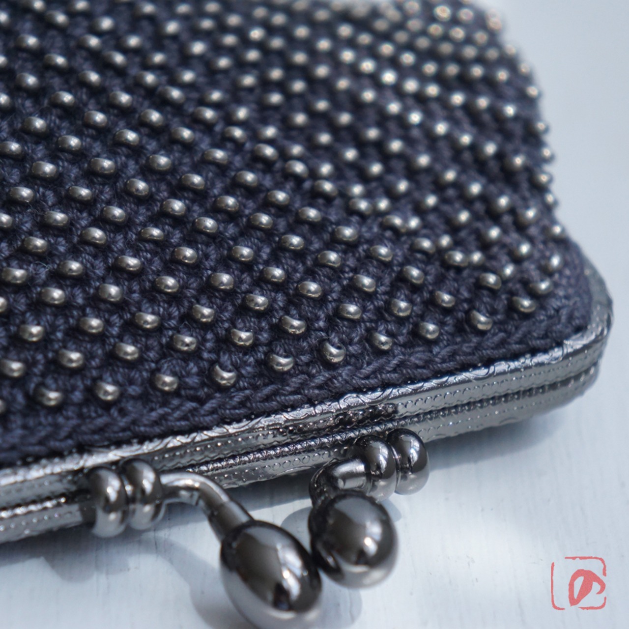 一目飛ばしにビーズを編み込んだ、つぶつぶ感がカワイイがま口。