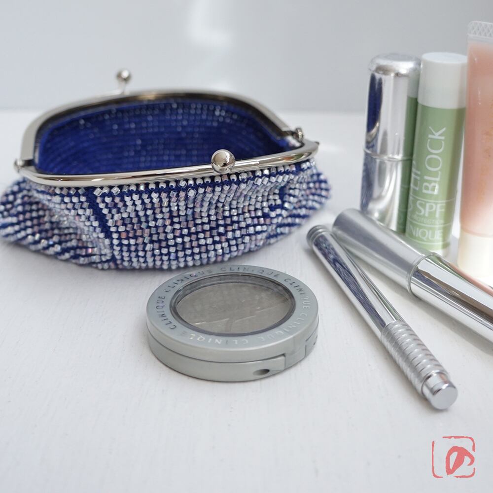 浅目のくし型口金のがま口は出し入れラクラク、小物を入れるのに便利です。