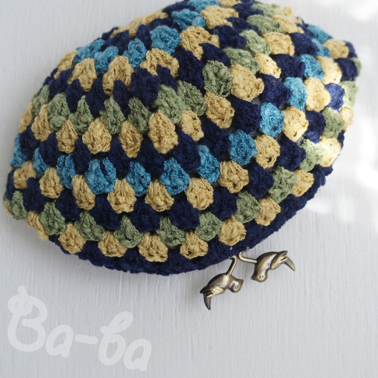 小鳥つまみの口金でほんわかレトロなポーチに仕上げました。
