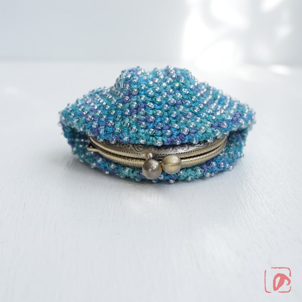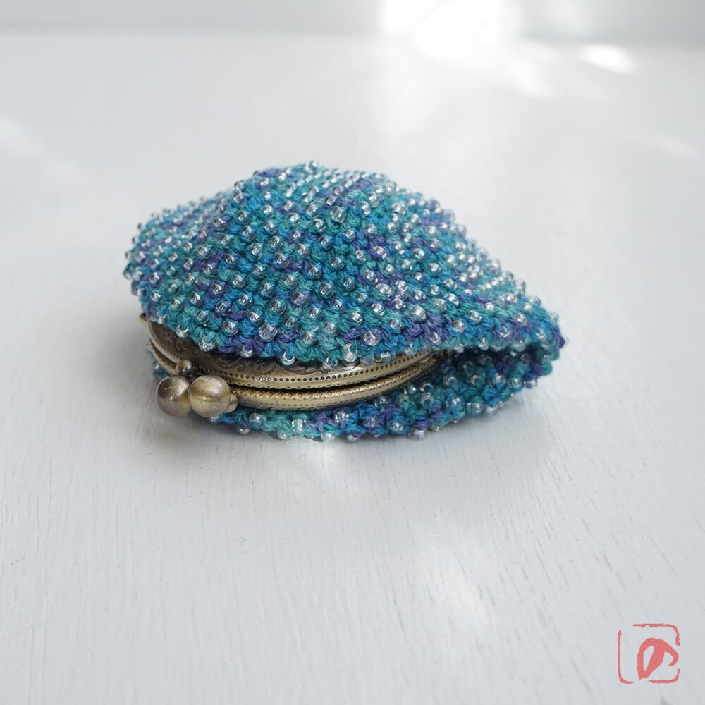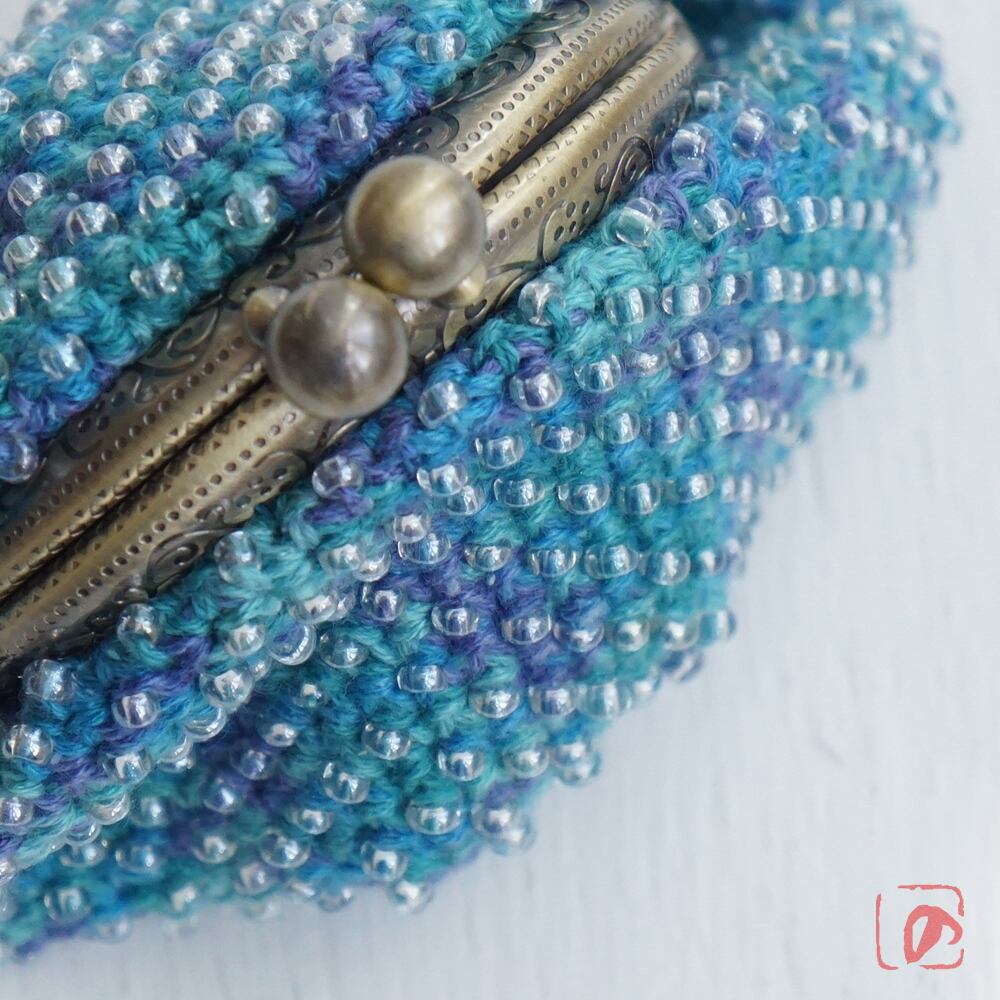 編みがま口×ビーズがま口のハイブリットつぶつぶビーズがま口です。