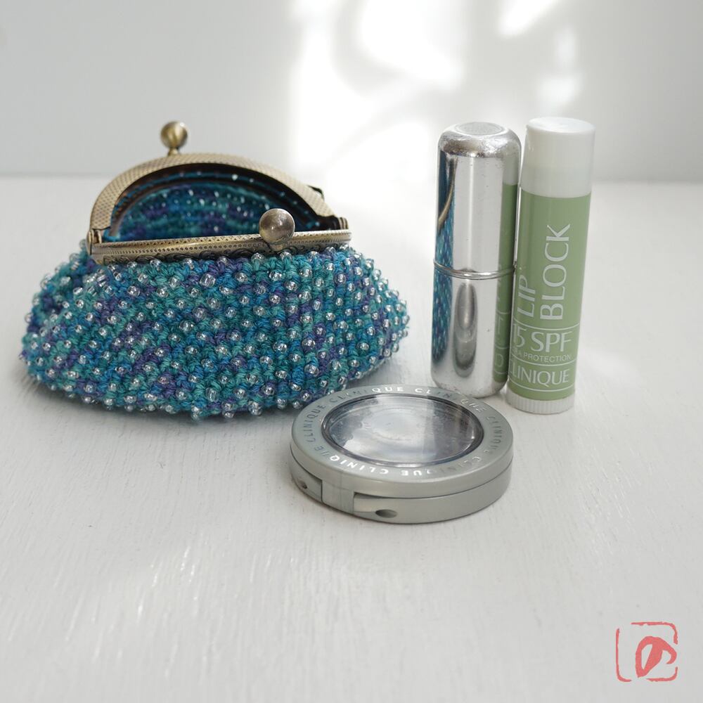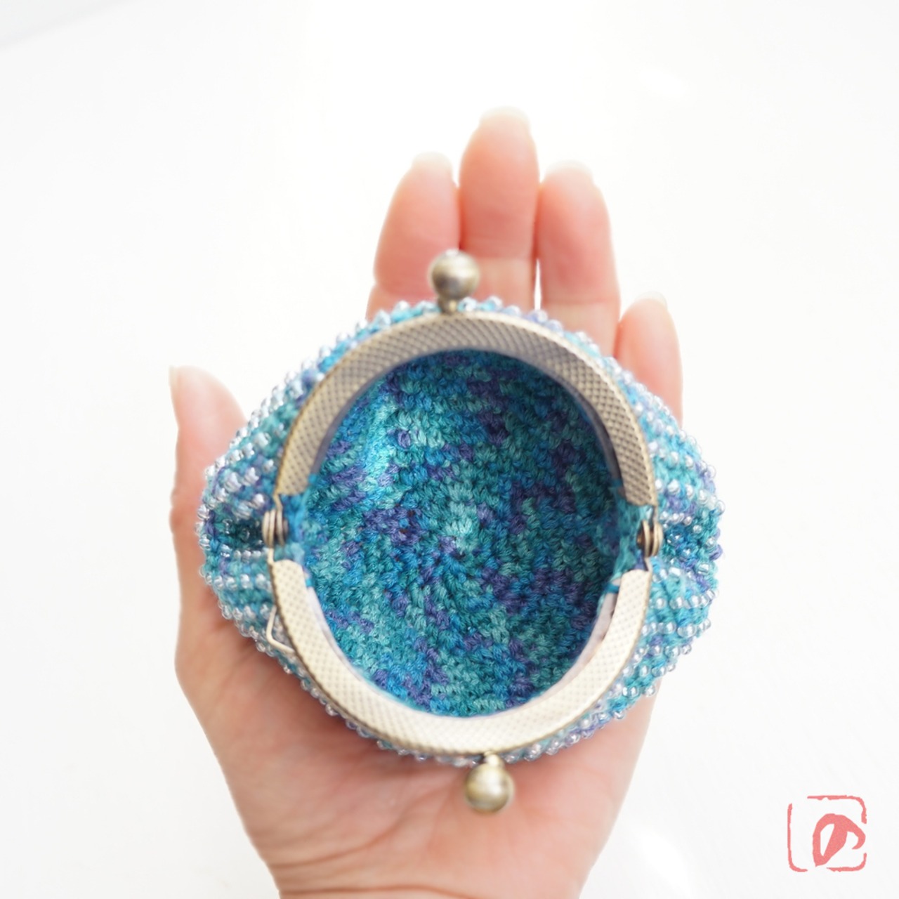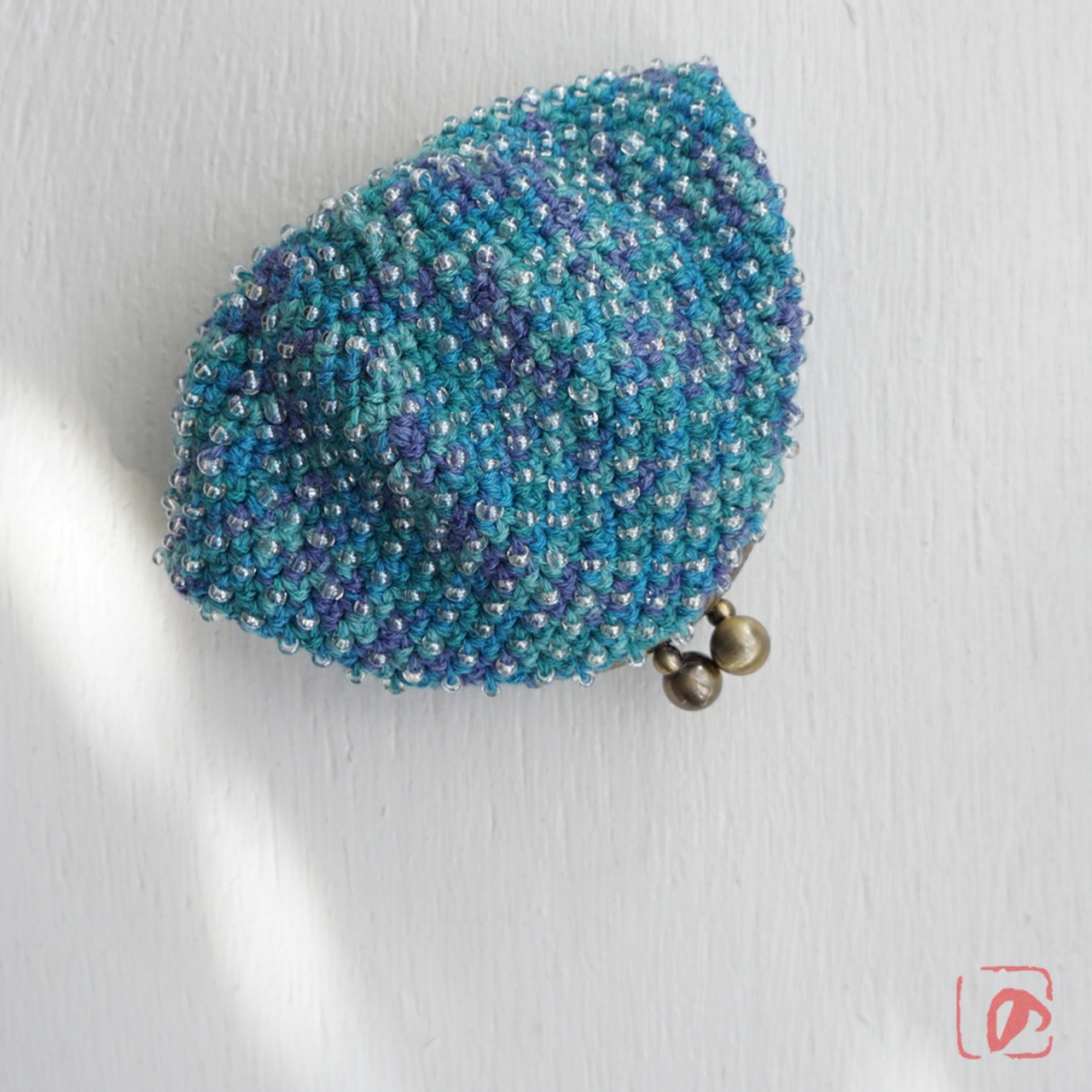 編みがま口×ビーズがま口のハイブリットつぶつぶビーズがま口です。