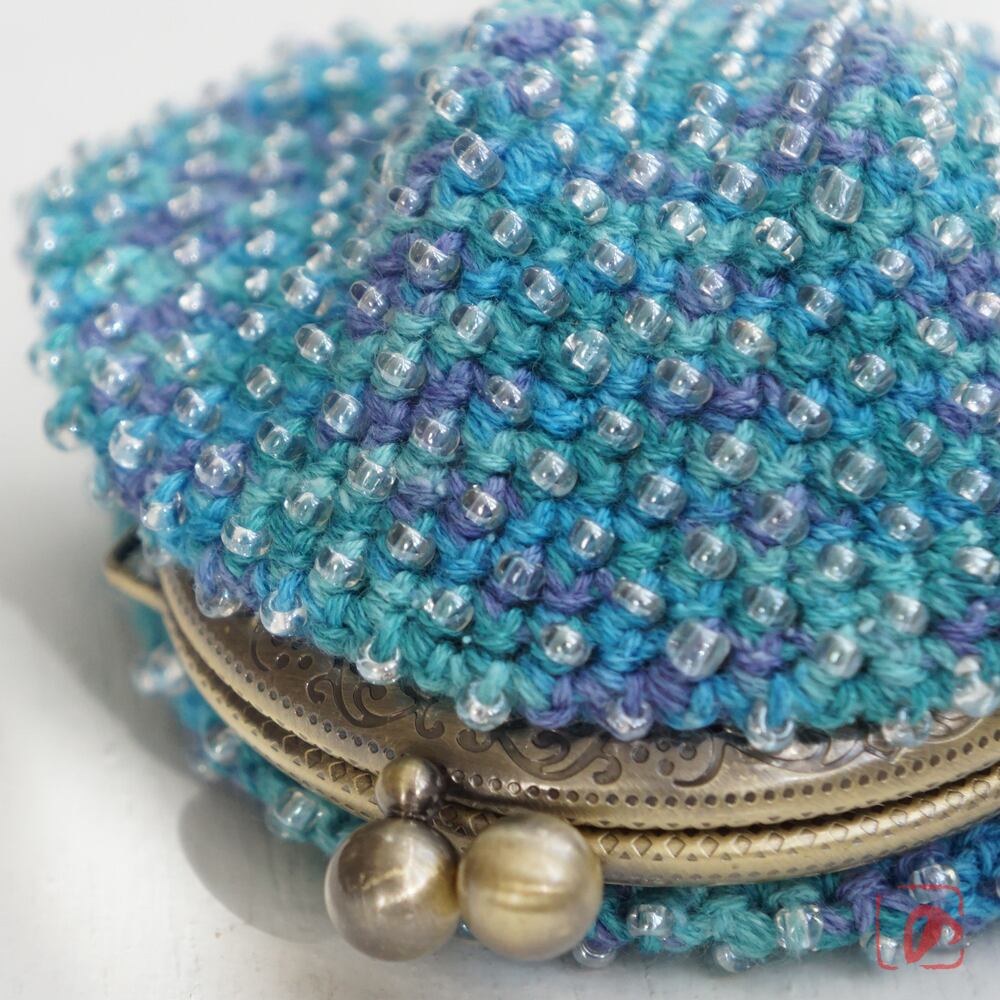 一目飛ばしにビーズを編み込んだ、つぶつぶ感がカワイイがま口。