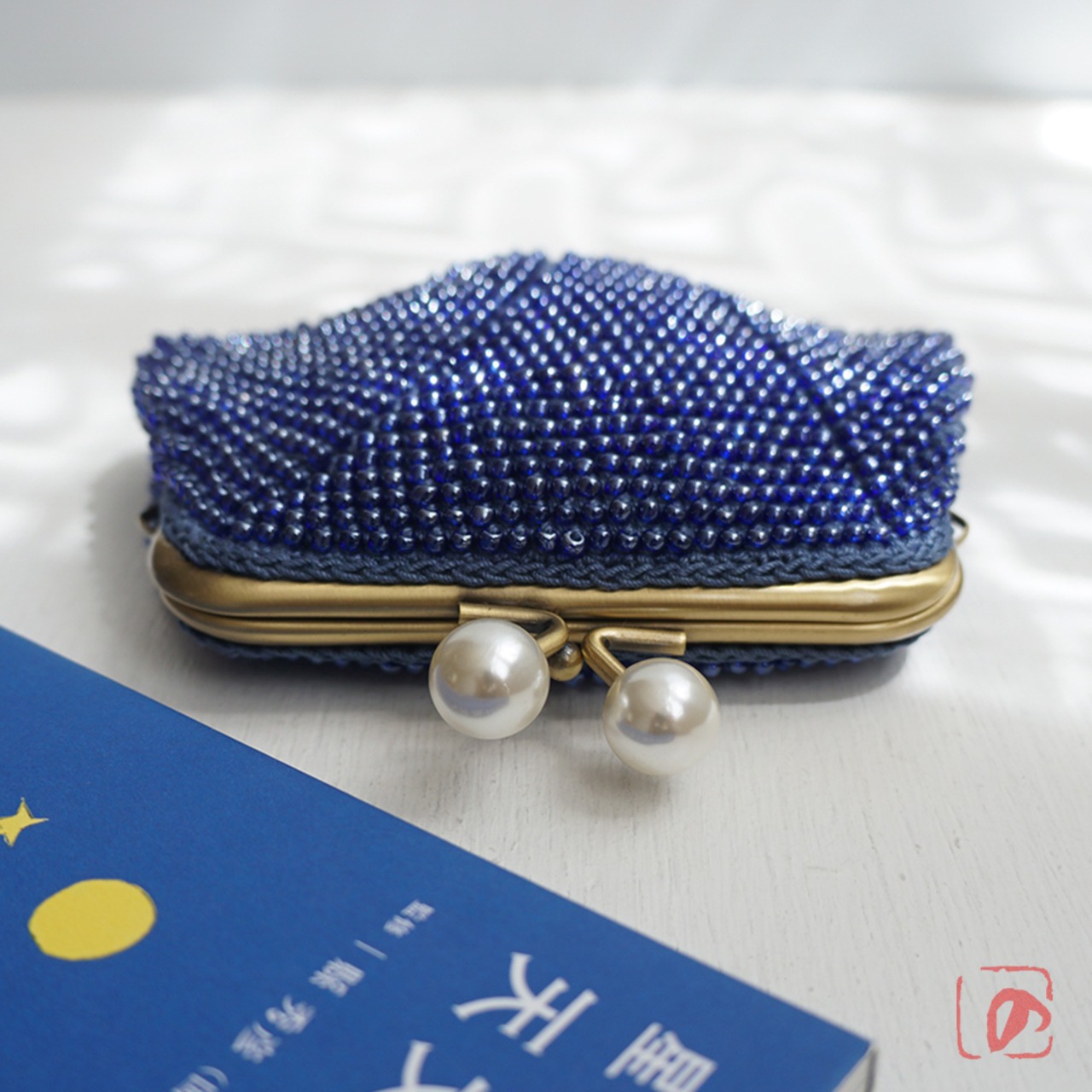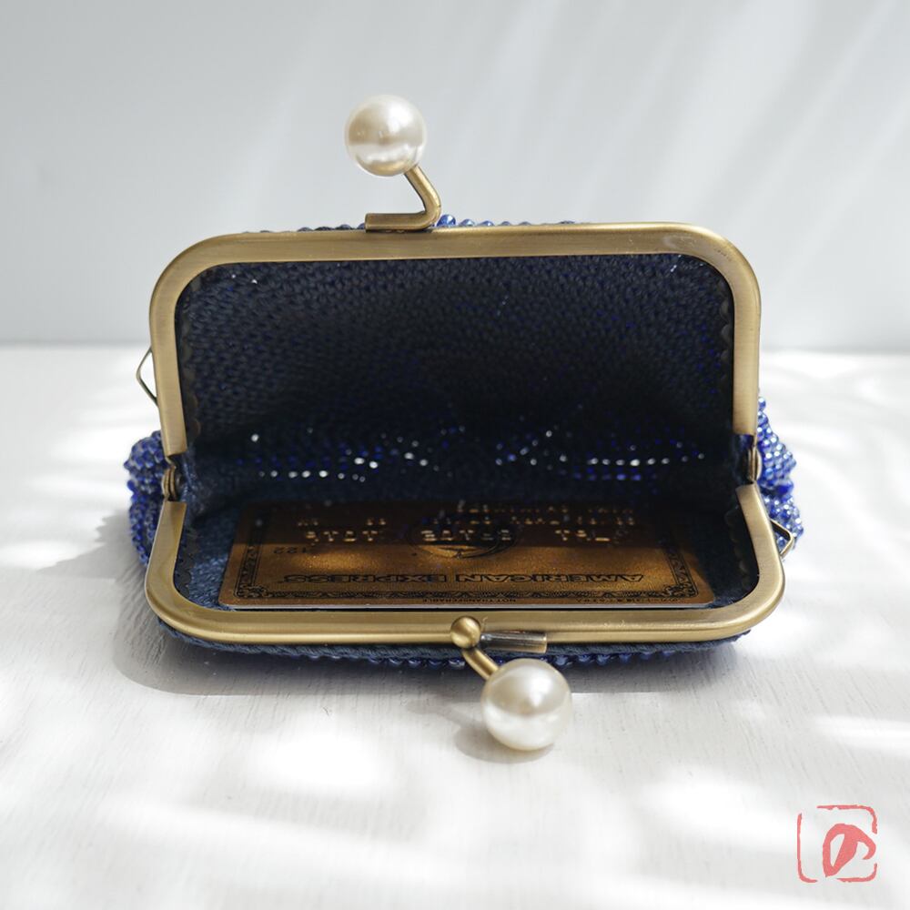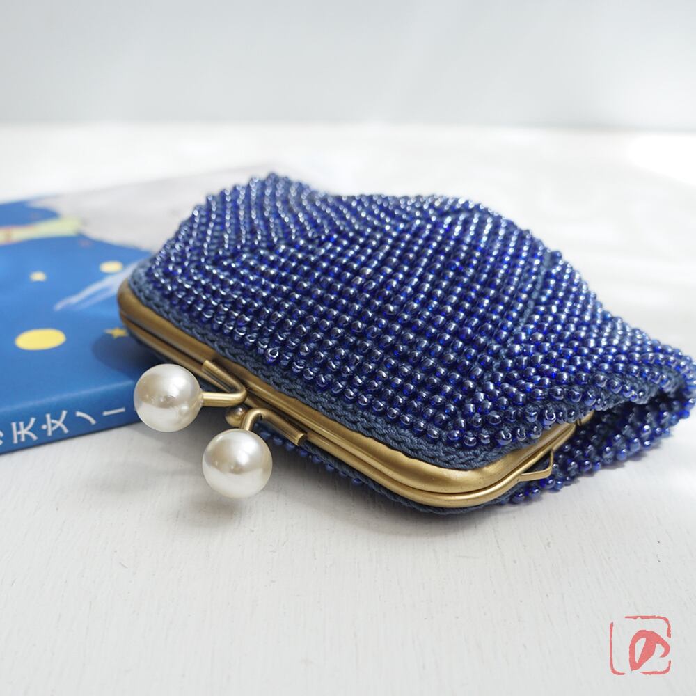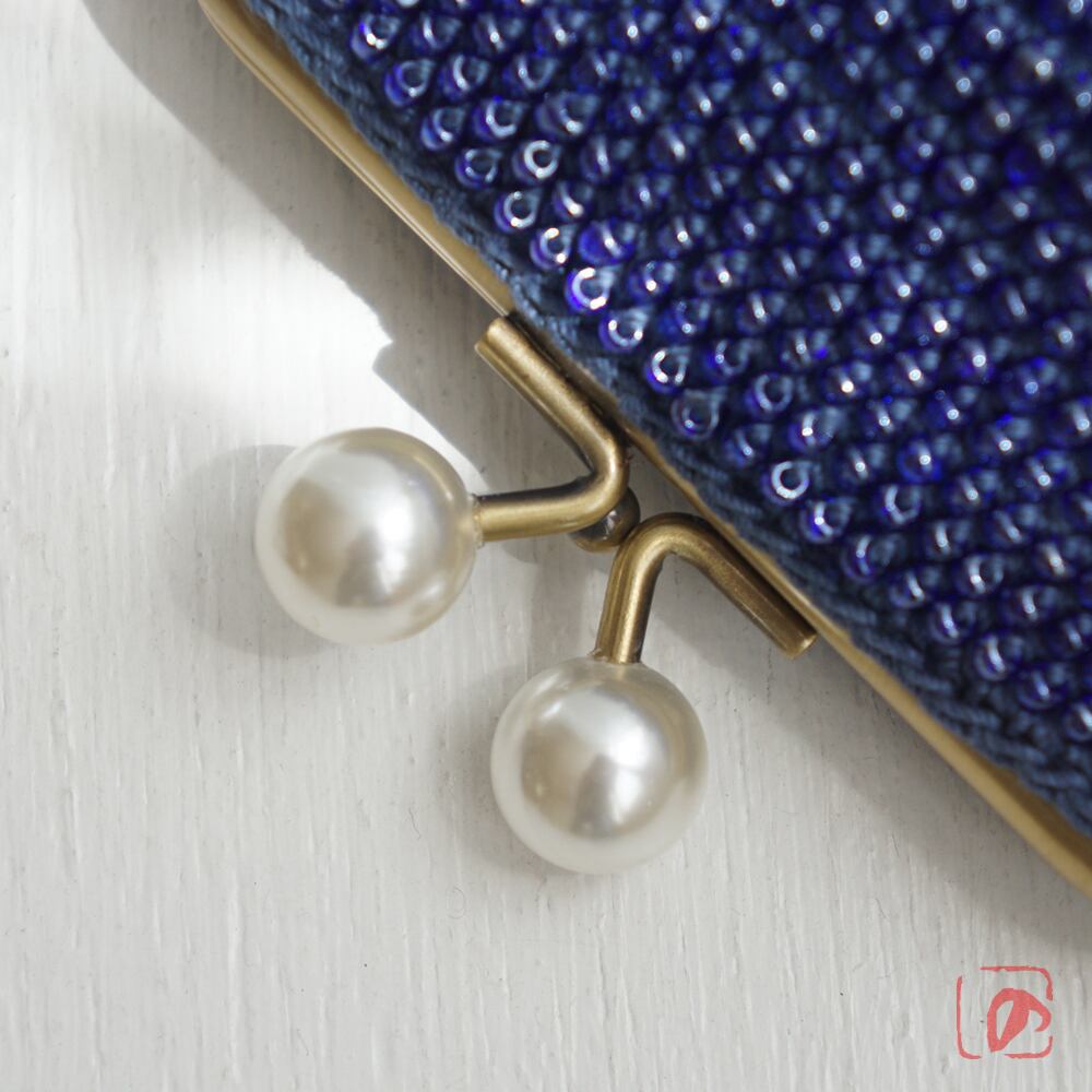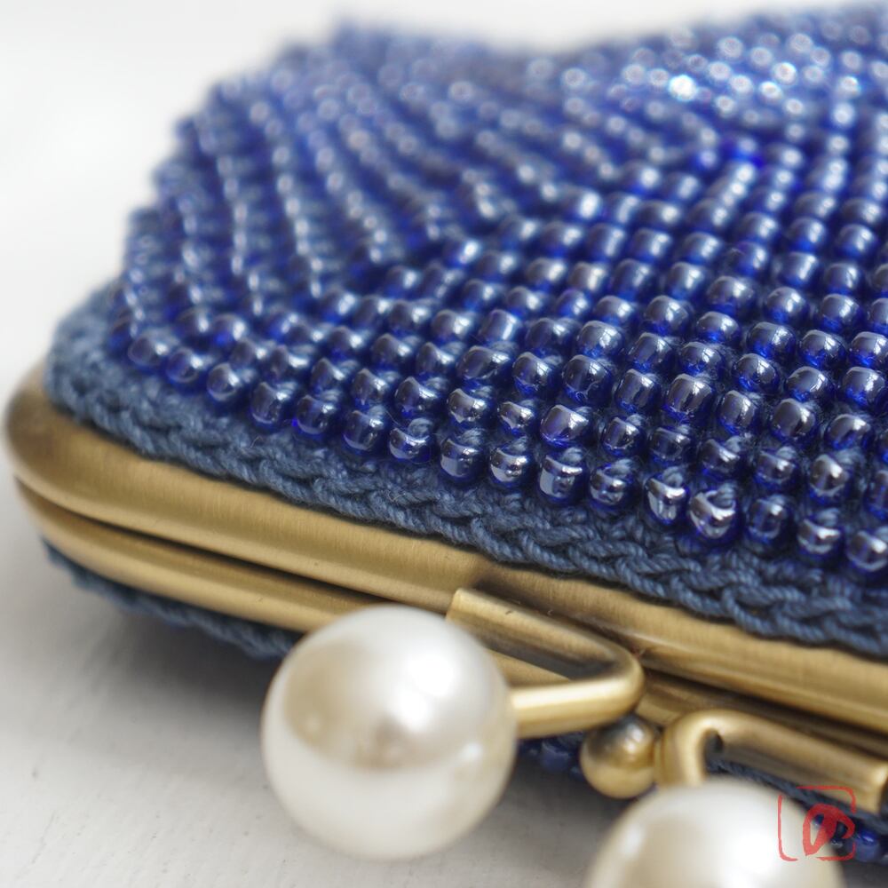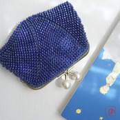 ばあば☆大きめ・総ガラスビーズのスクエアがま口(蒼海・2159)