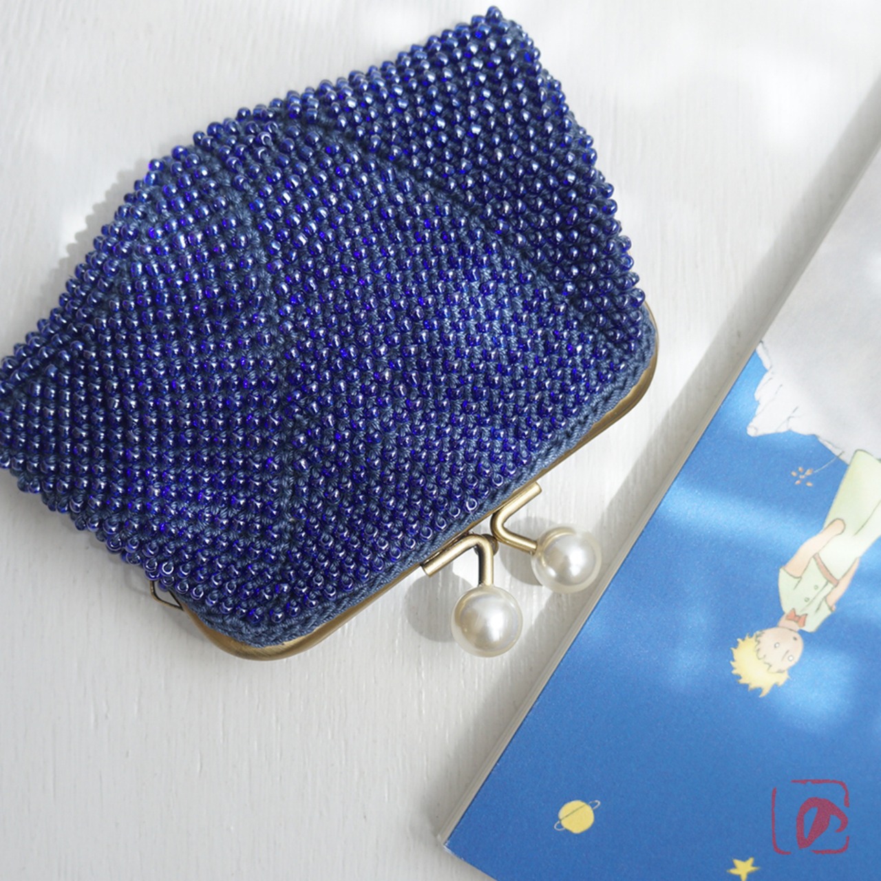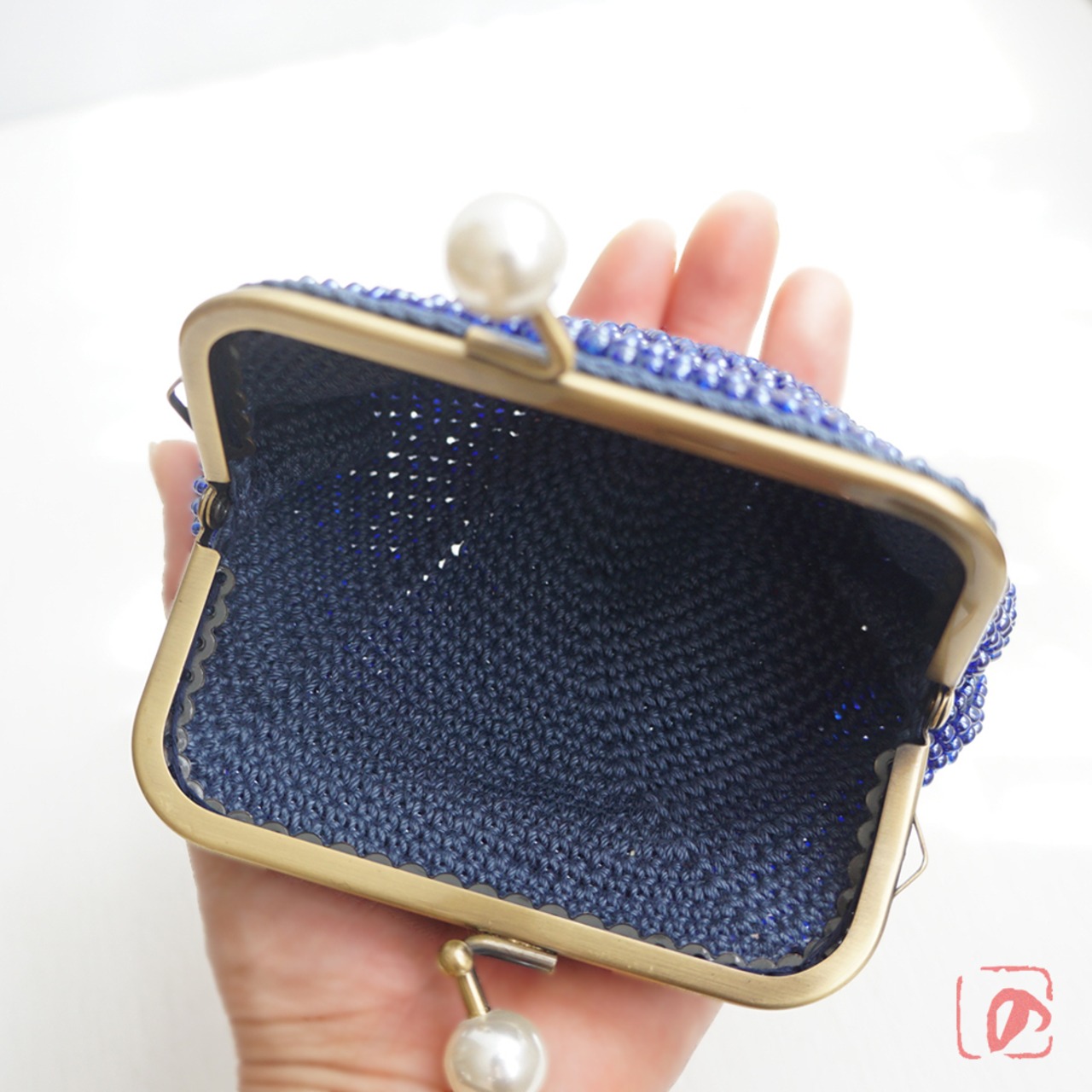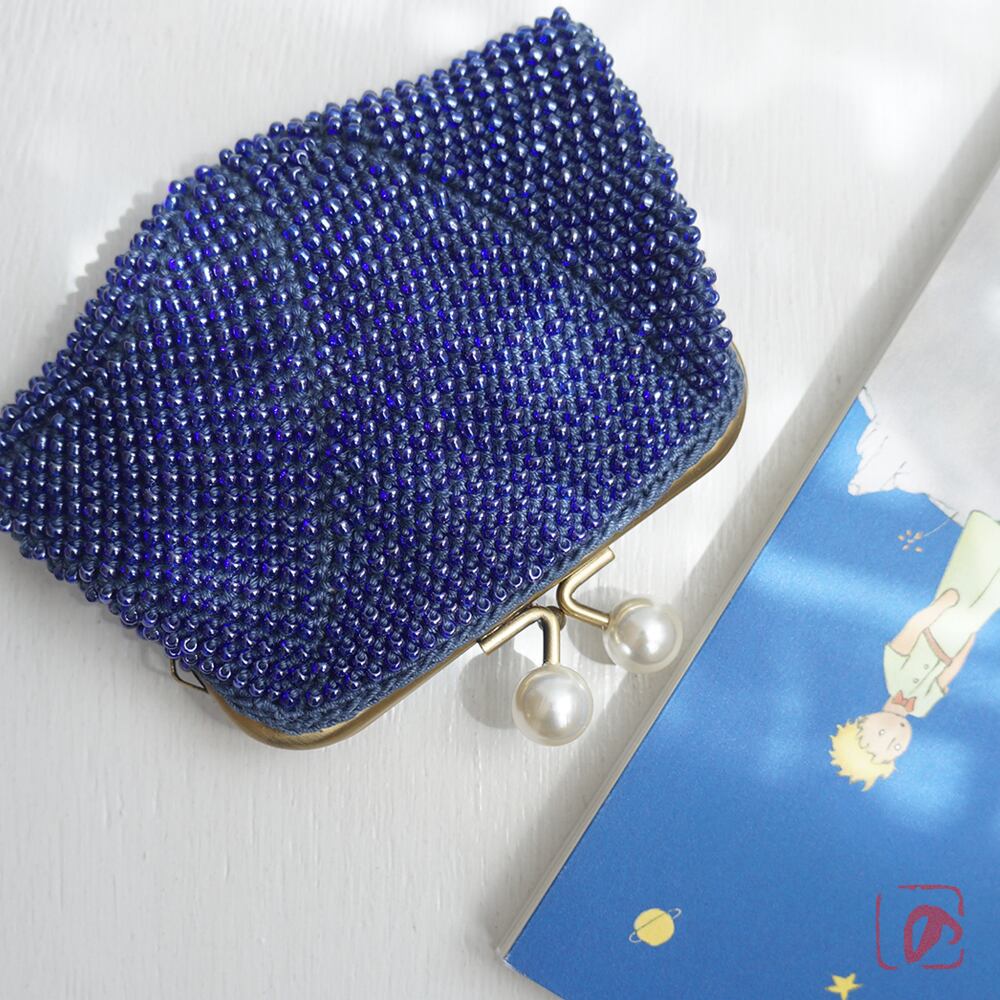 3mmのガラスビーズをひとつぶづつ、全面に編み込みました。