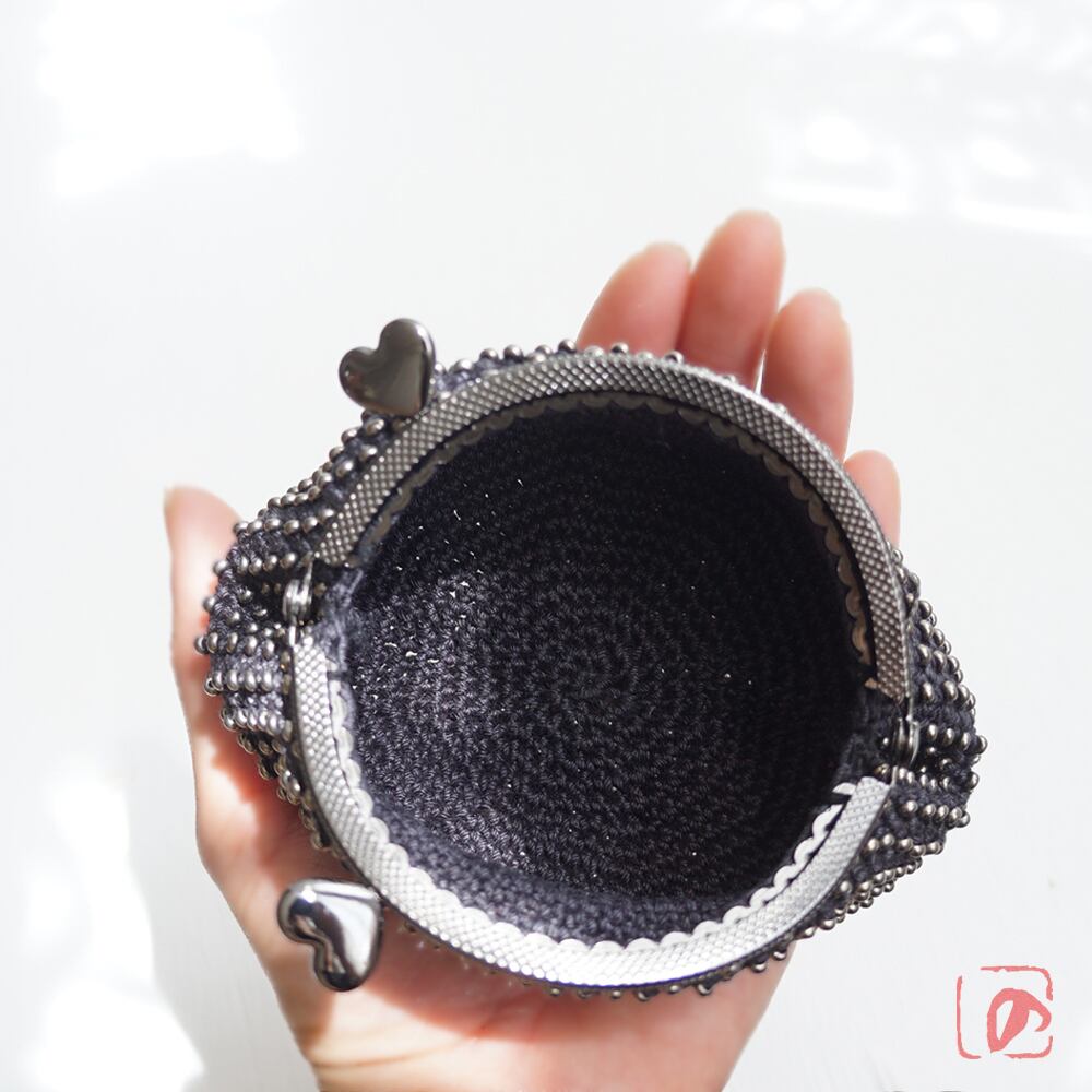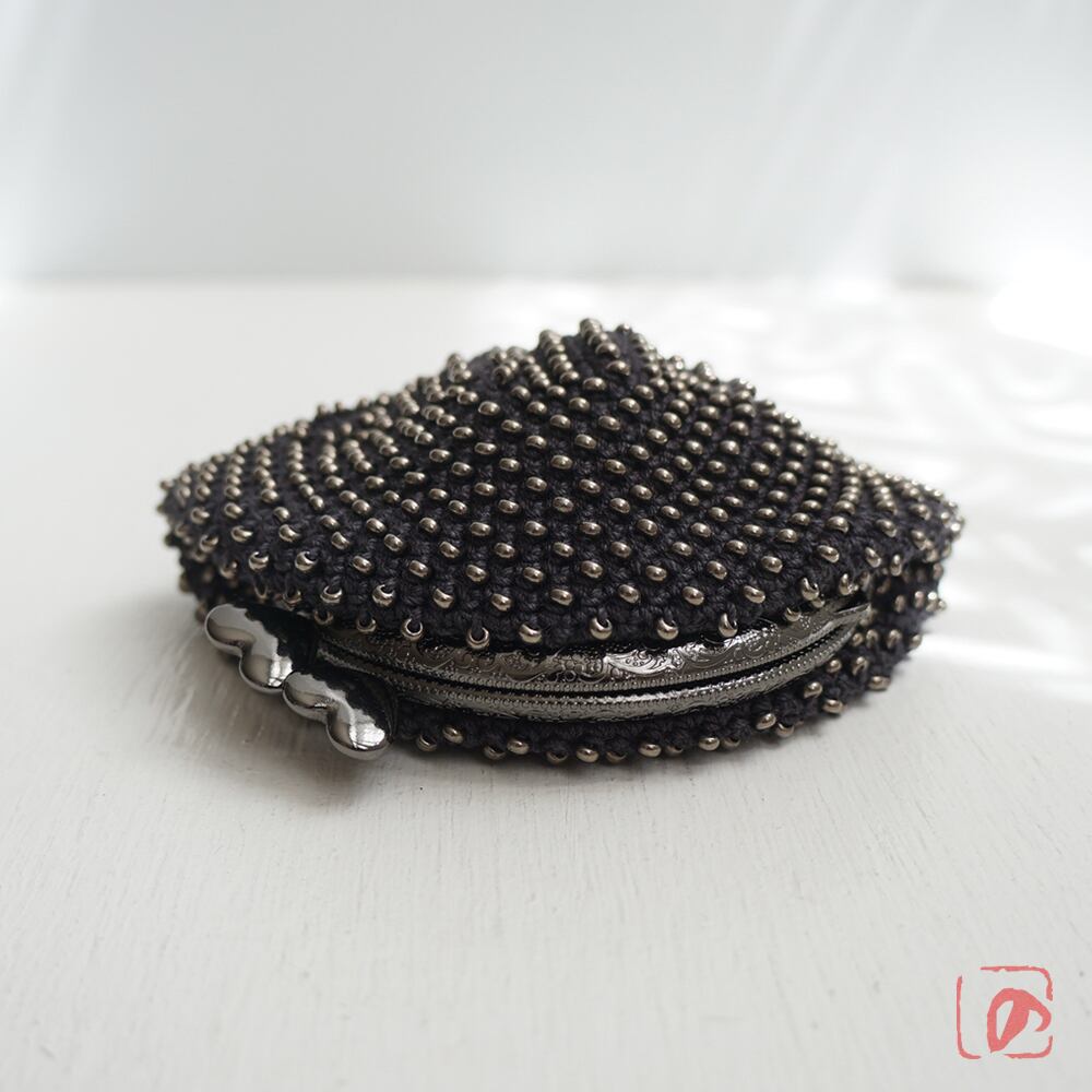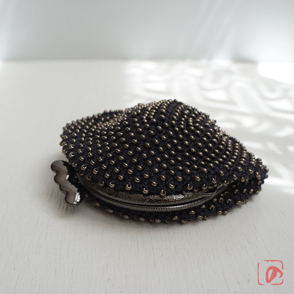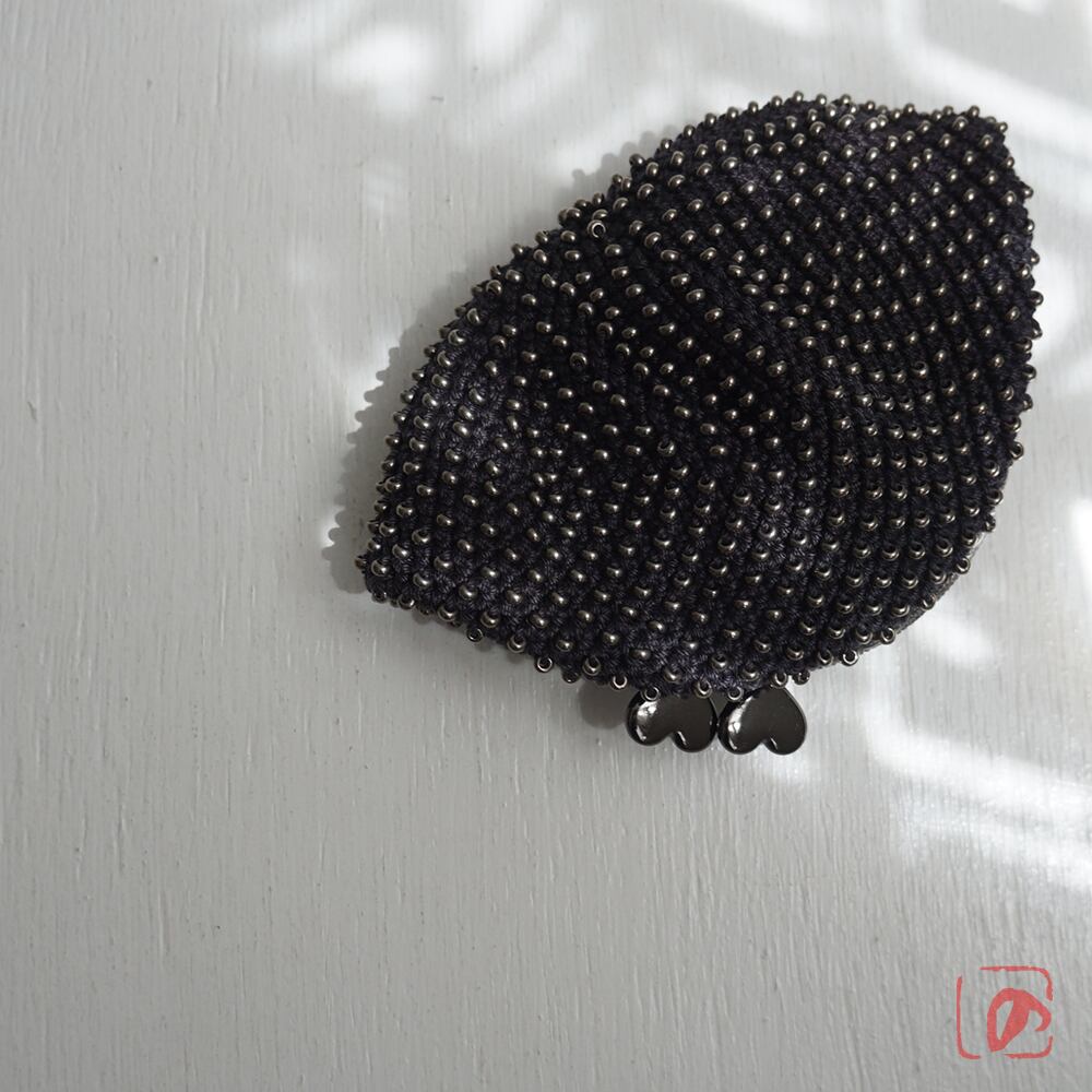 ばあば ⁛ つぶつぶガラスビーズのがま口(leaden heart・2161)