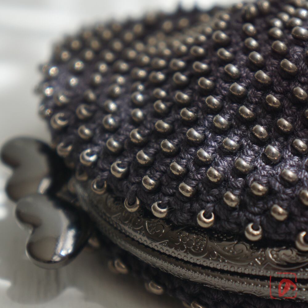 一目飛ばしにビーズを編み込んだ、つぶつぶ感がカワイイがま口。