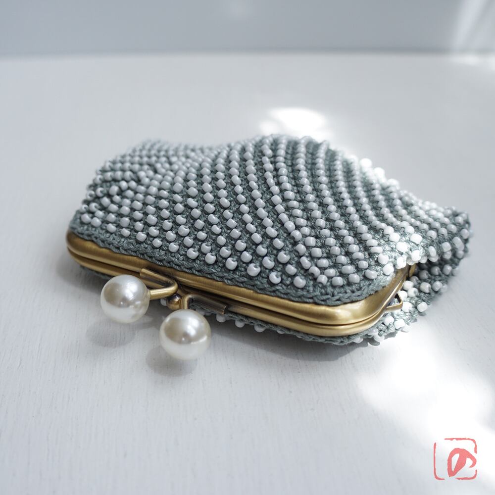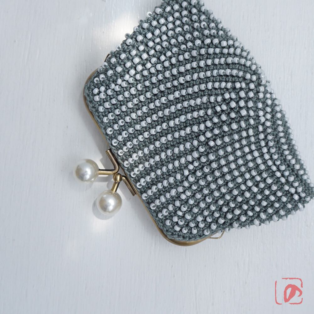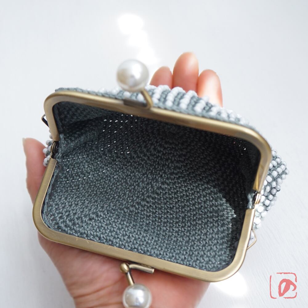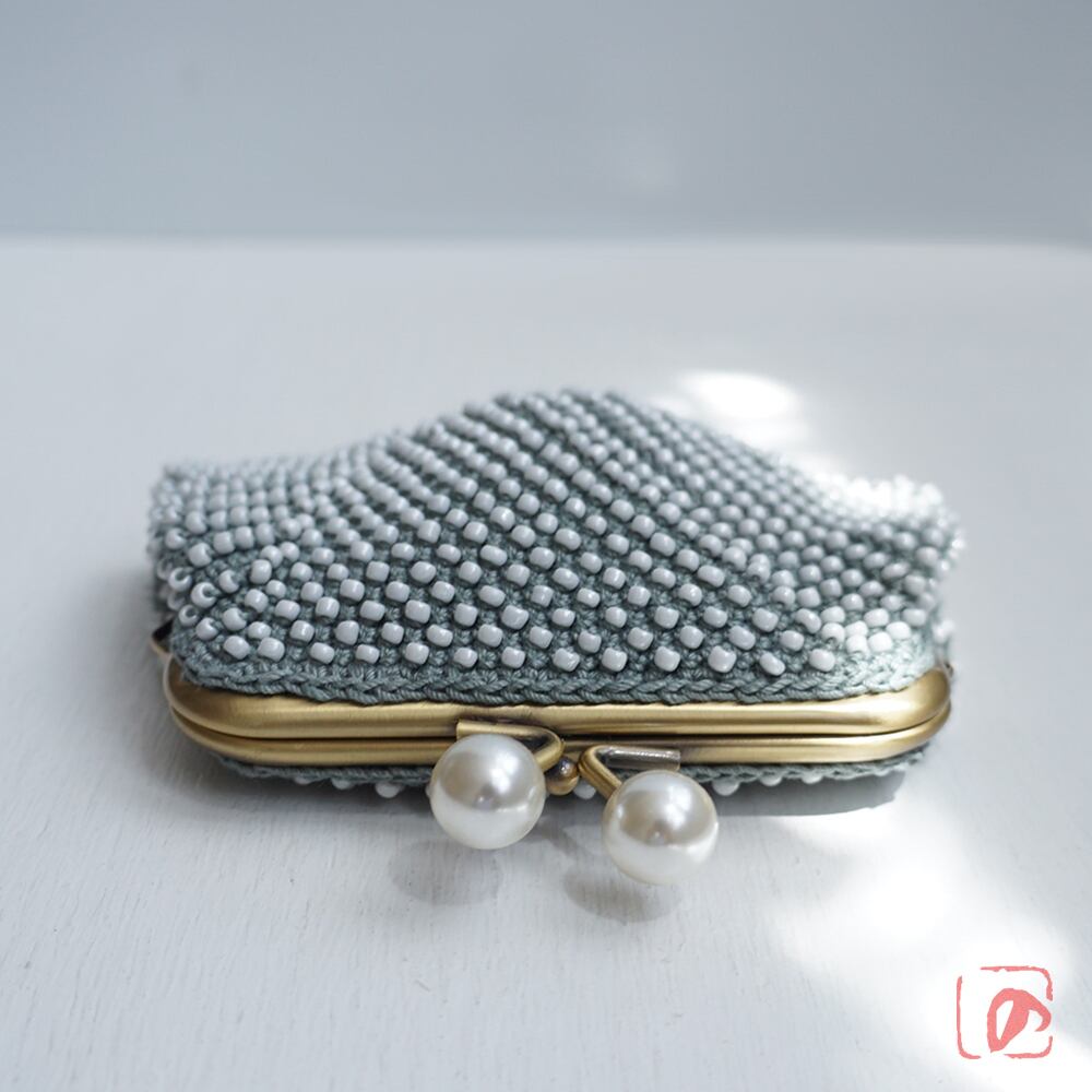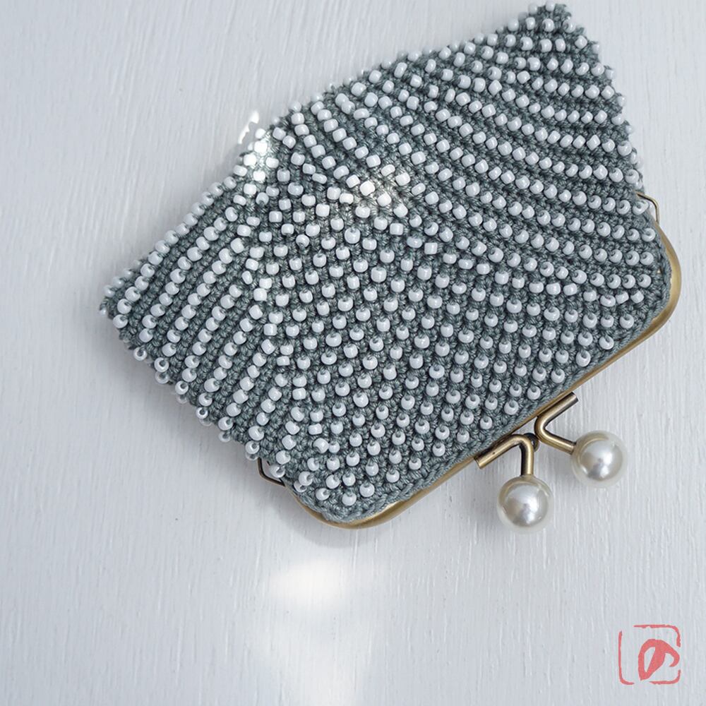 一目飛ばしにビーズを編み込んだ、つぶつぶ感がカワイイがま口。