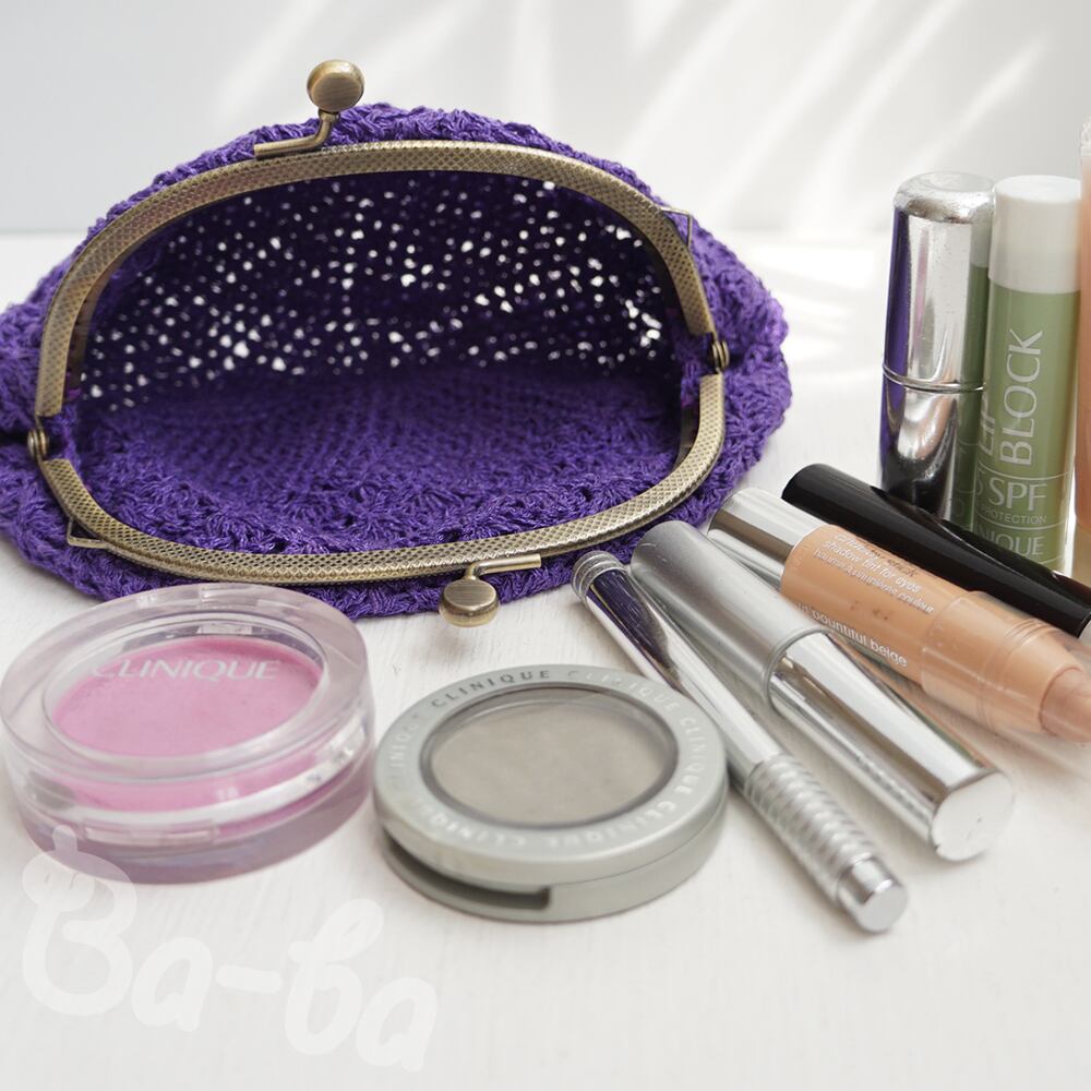 極細スラブ糸を松編みにしがま口に仕立てました。