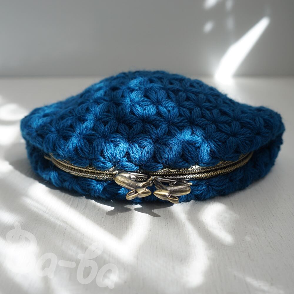 ばあば ♩ リフ編みのがま口ポーチ(Sininen kani・C1784)
