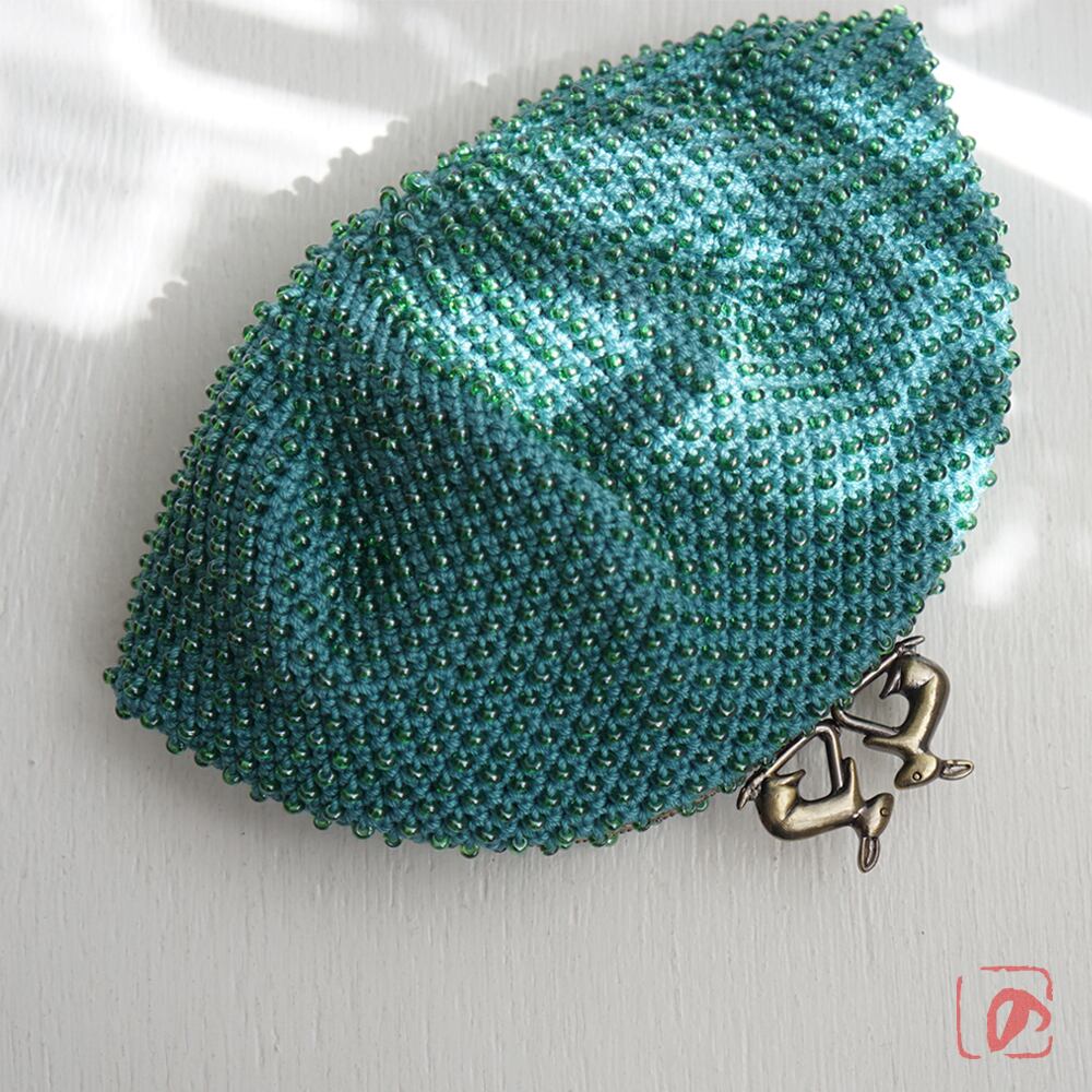 一目飛ばしにビーズを編み込んだ、つぶつぶ感がカワイイがま口。