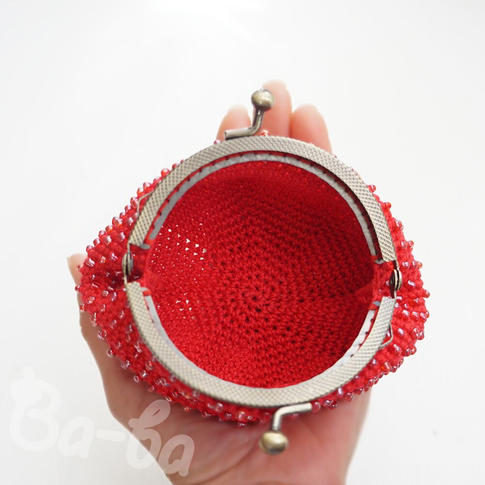 ばあば ⋱ 飛び飛びガラスビーズの編みがま口(akadot・C1795)