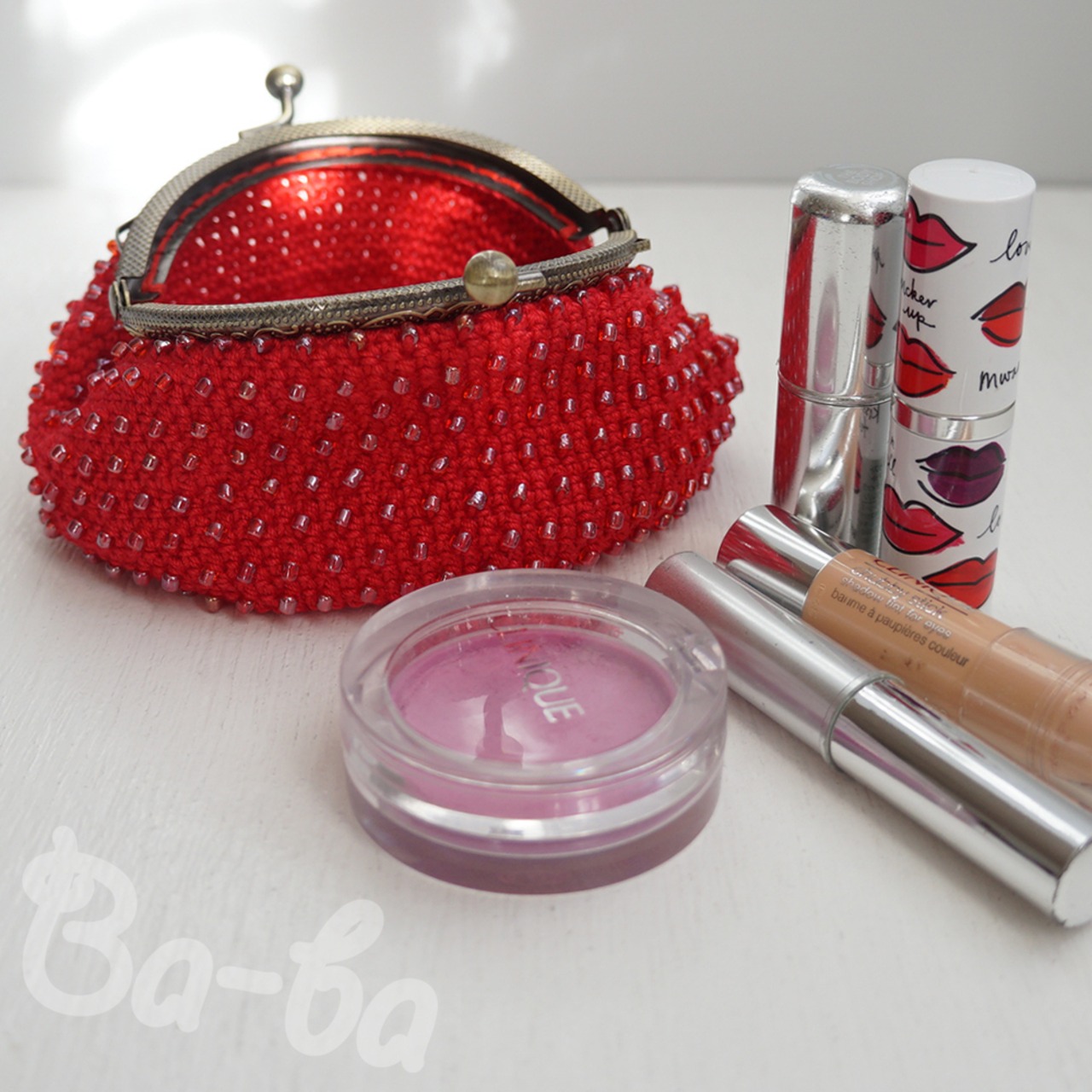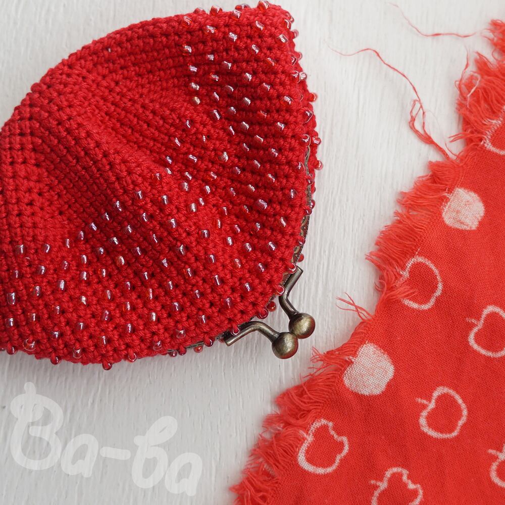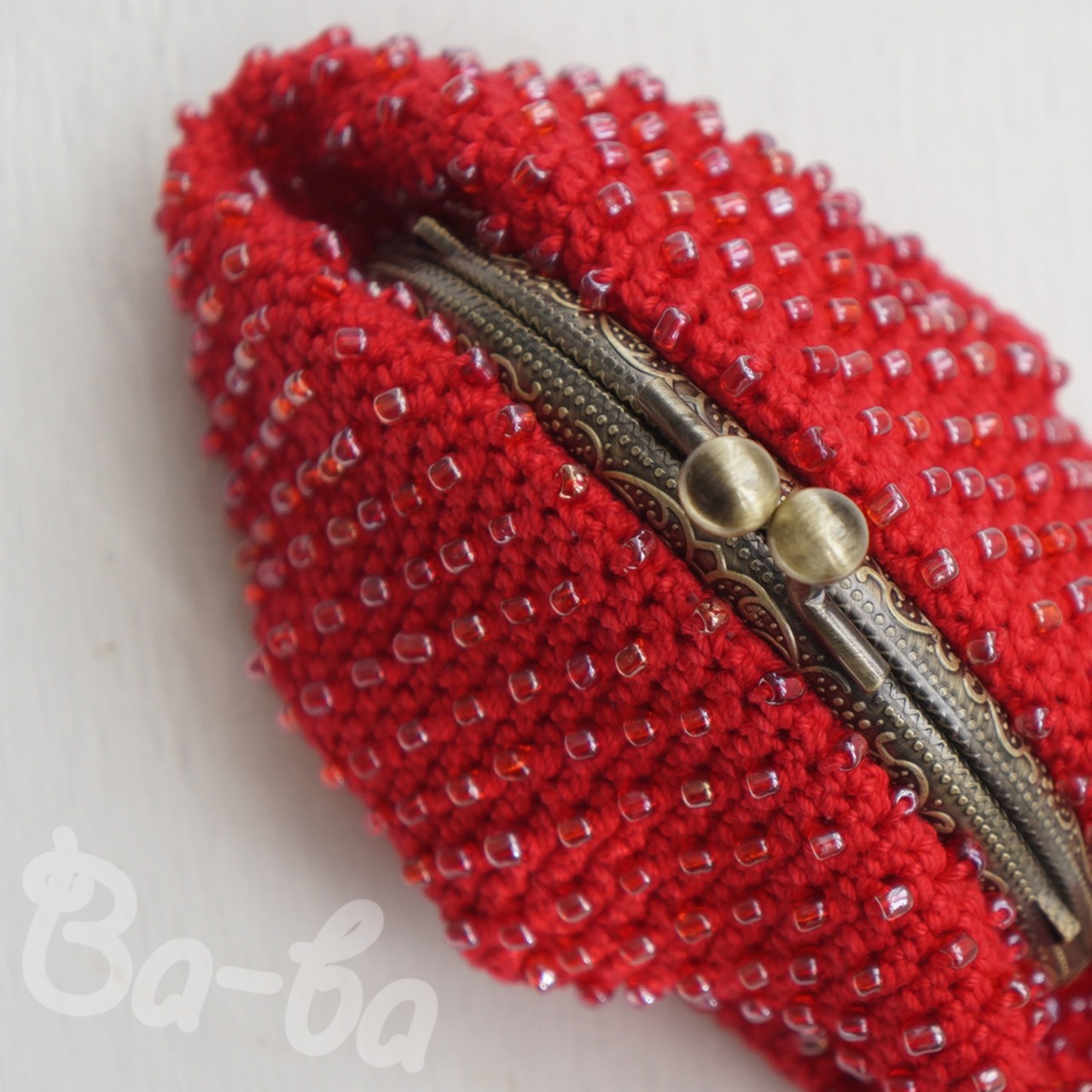 飛び飛びにビーズを編み込んだ、つぶつぶ感がカワイイ編みがま口。