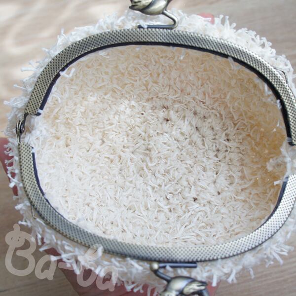 縫いつけ口金を使用し、本体としっかり固定しました。