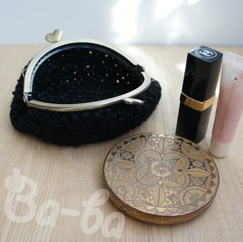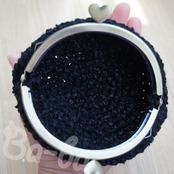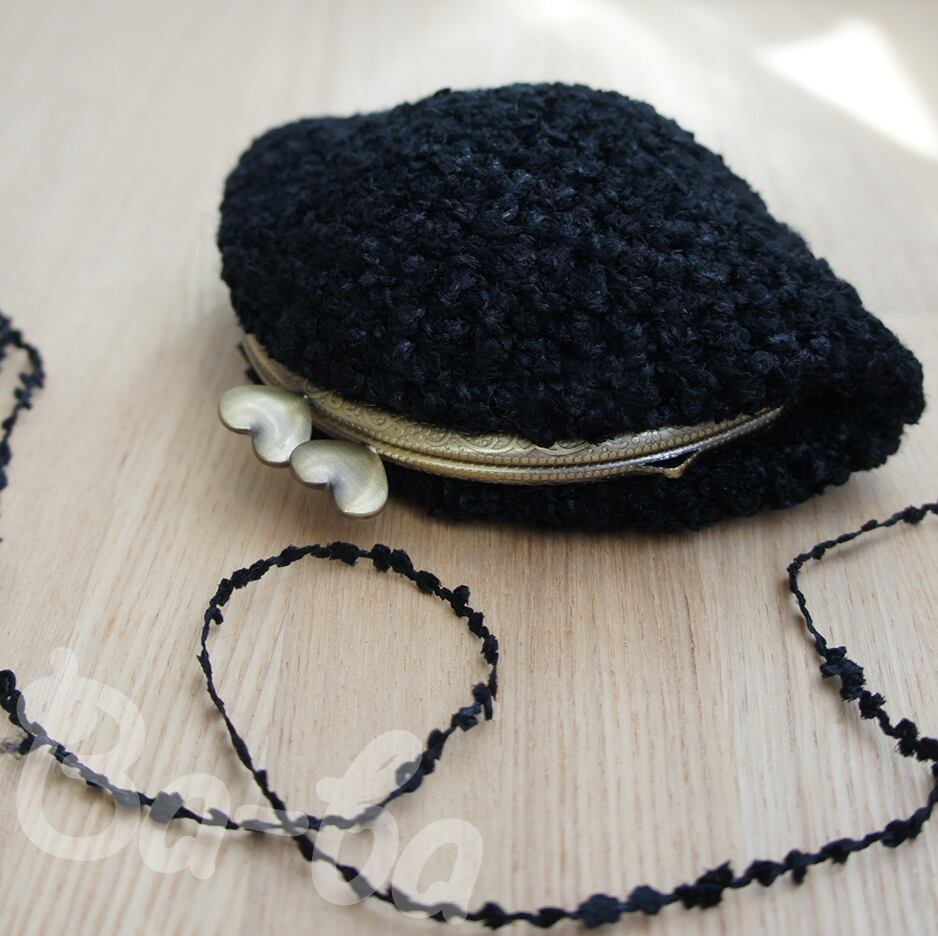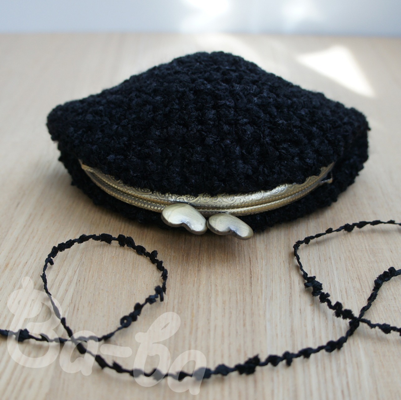 細かくネップの入った黒い糸を、細編みで仕上げました。