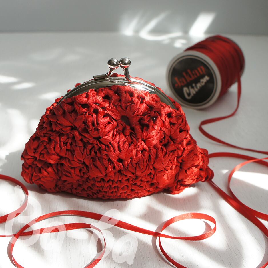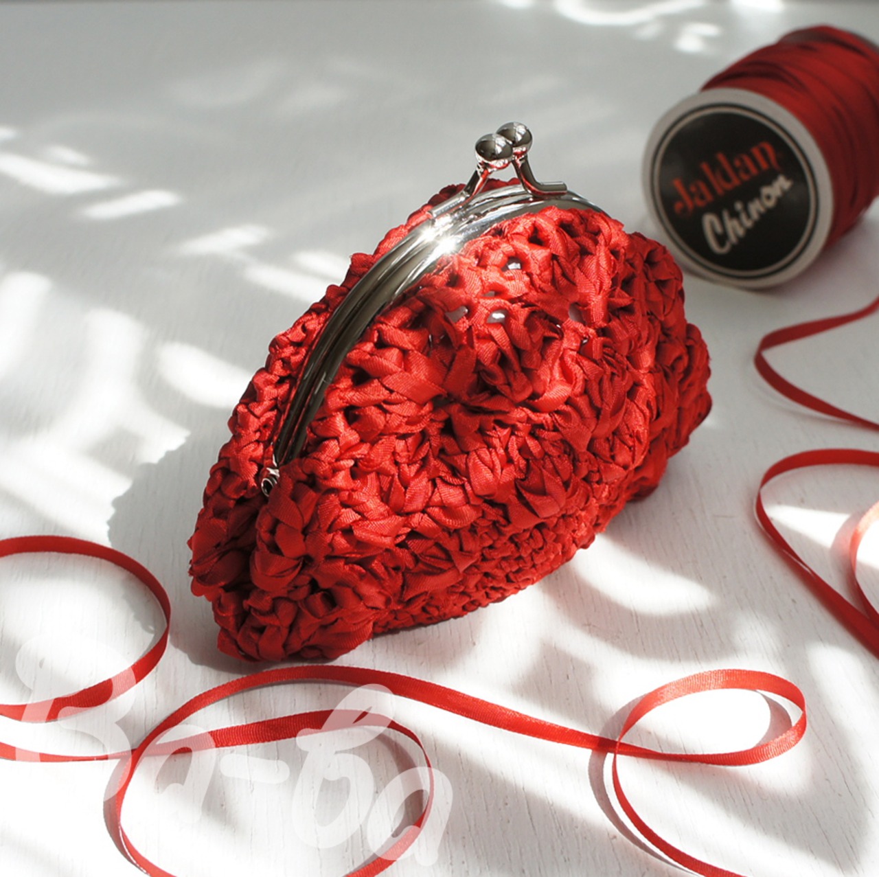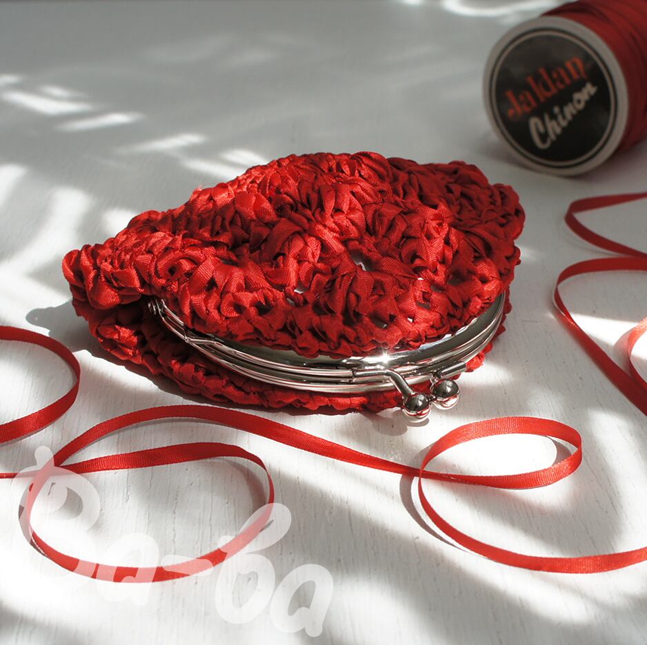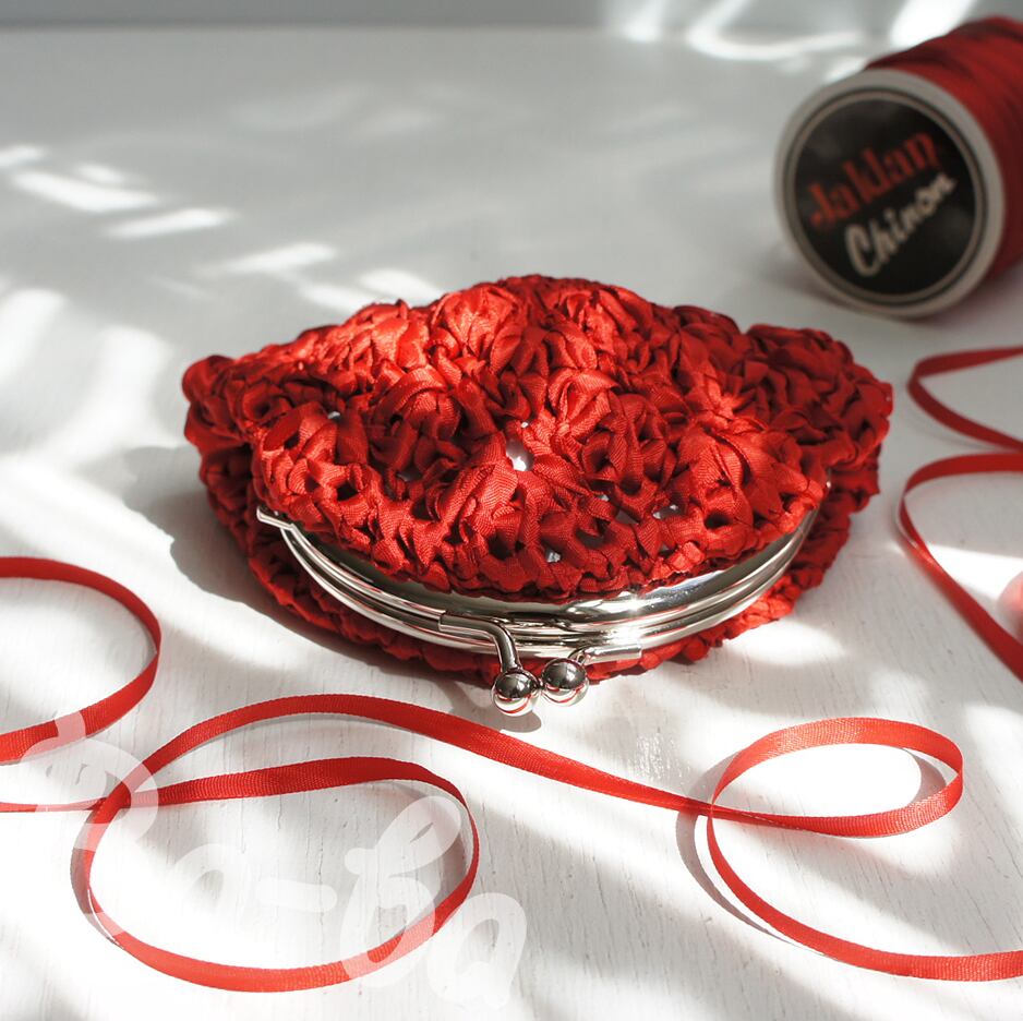 糸 : 化繊リボンヤーン2本取り(鮮やかな赤)