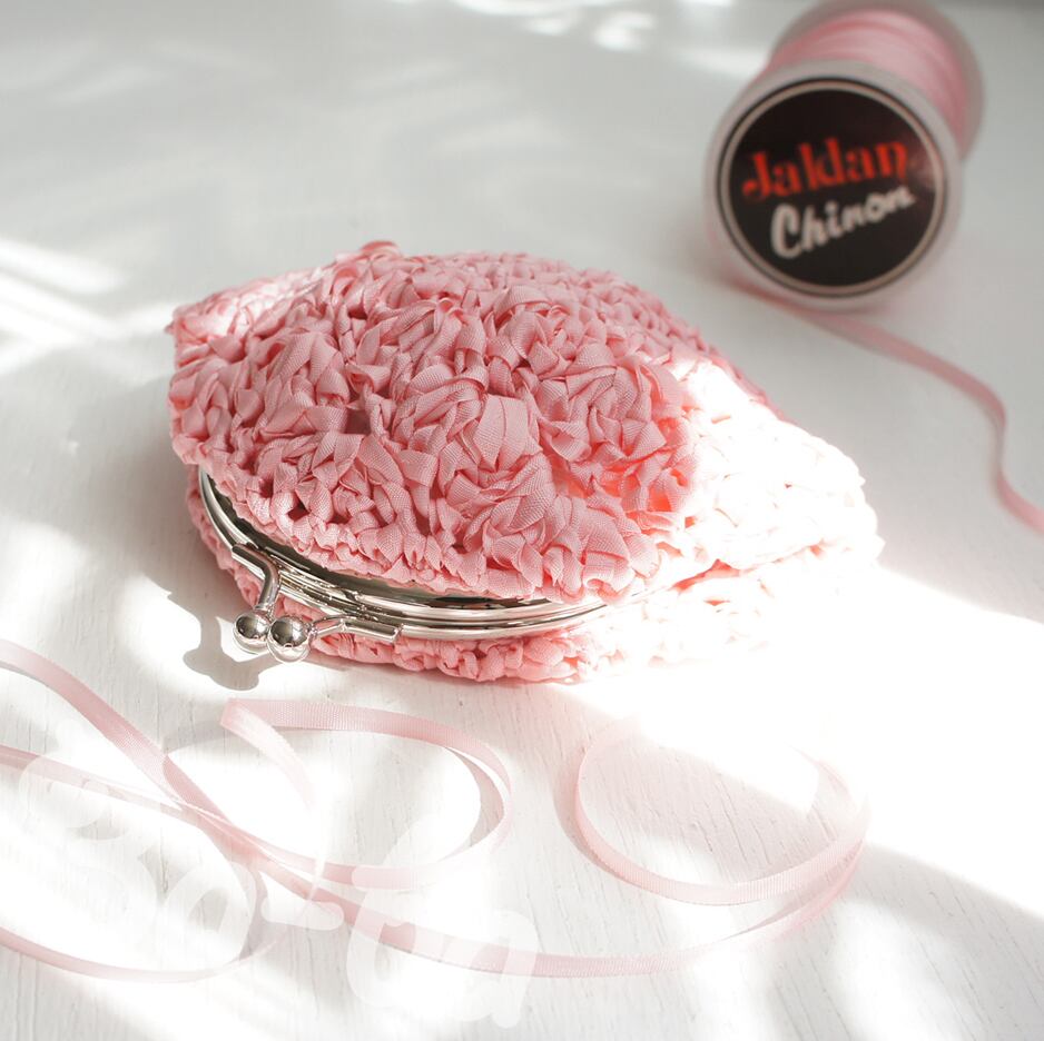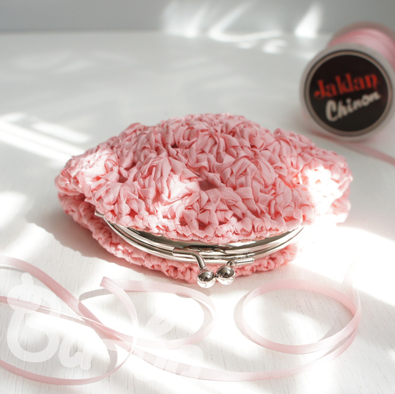 糸 : 化繊リボンヤーン2本取り(鮮やかなピンク)
