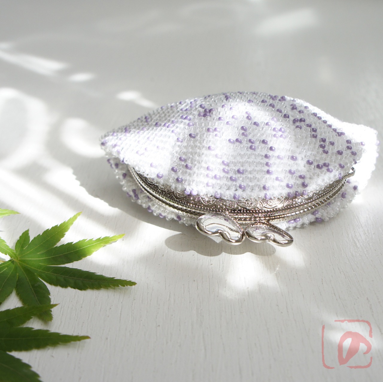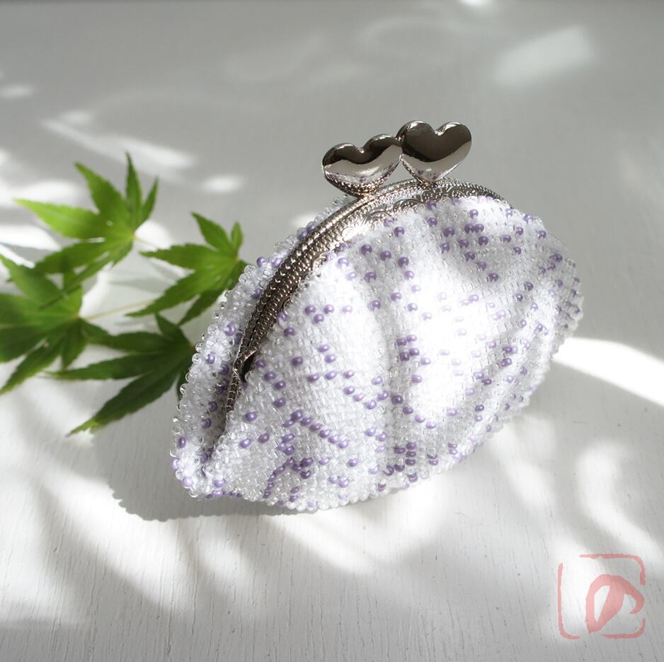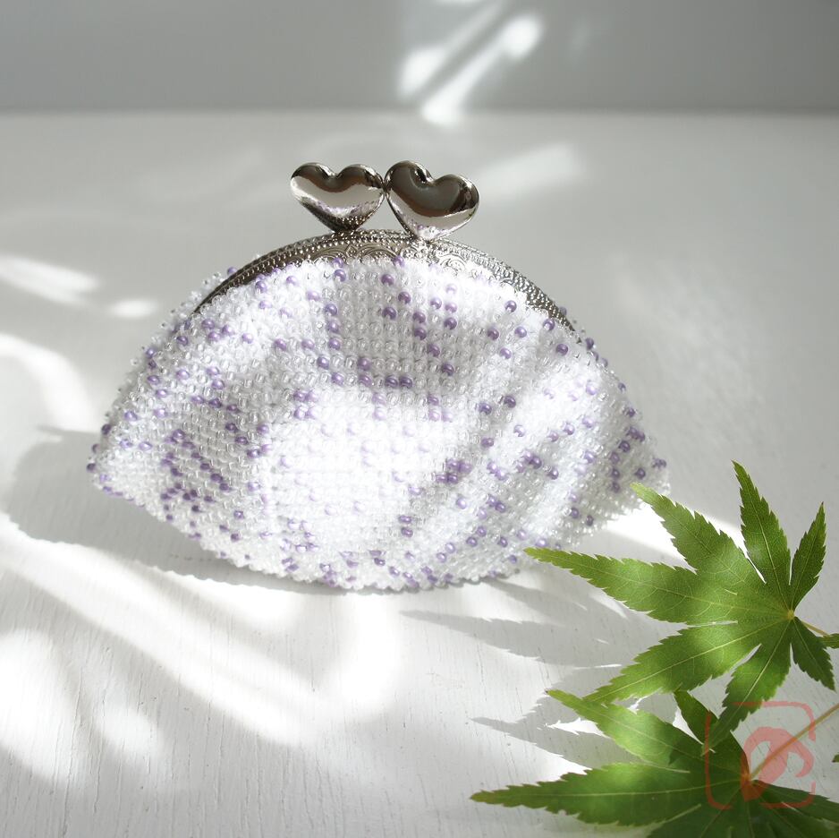 ばあば作♪シードビーズがま口(whitepurple・727)