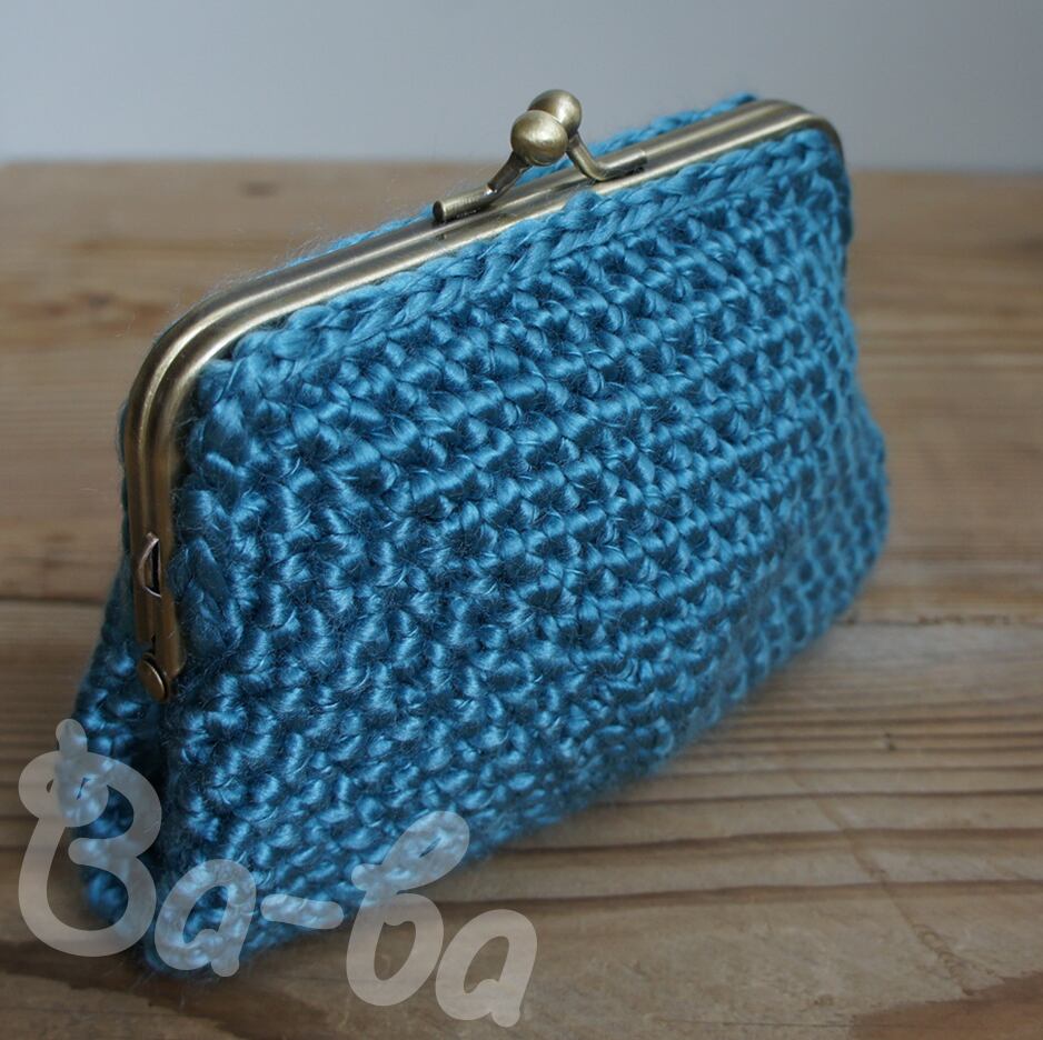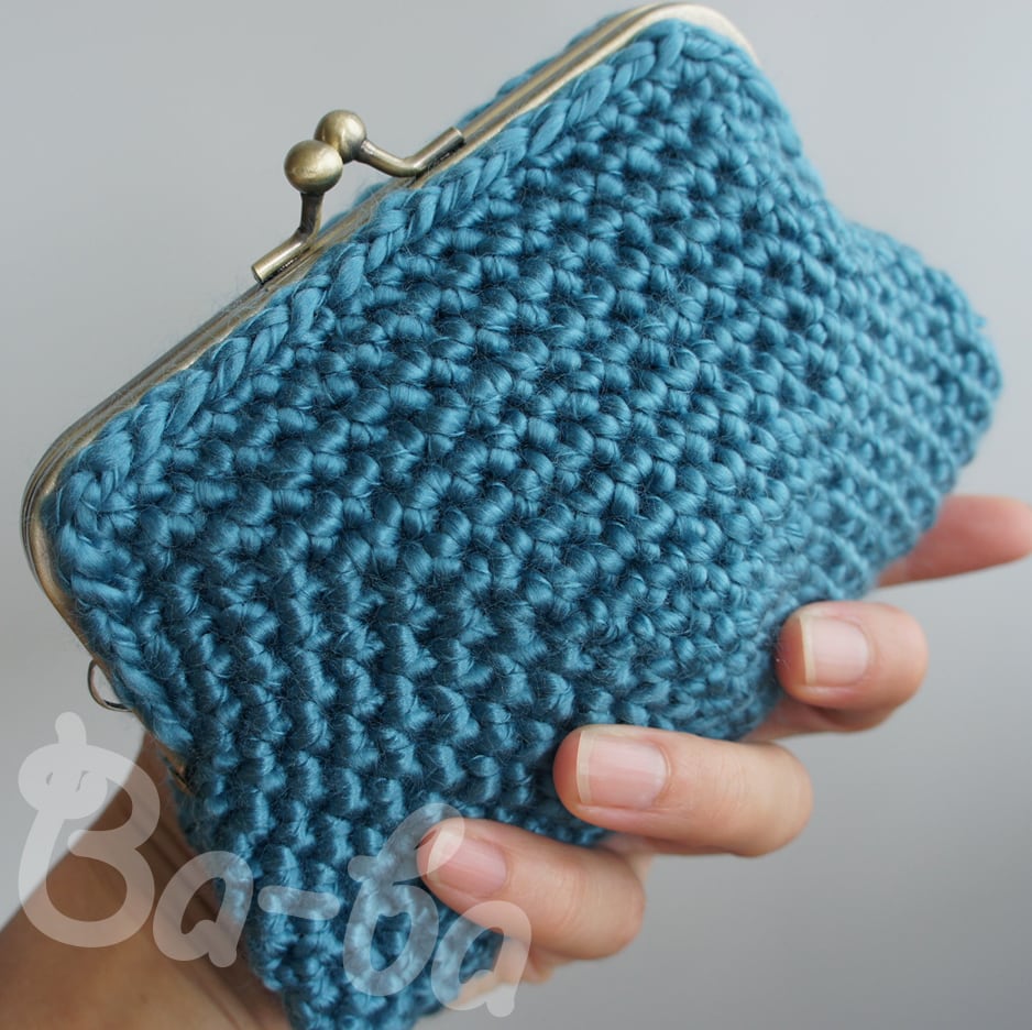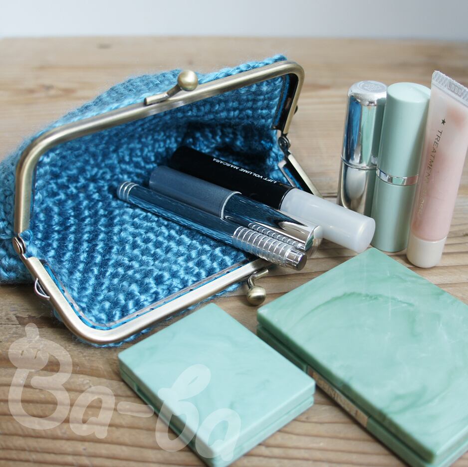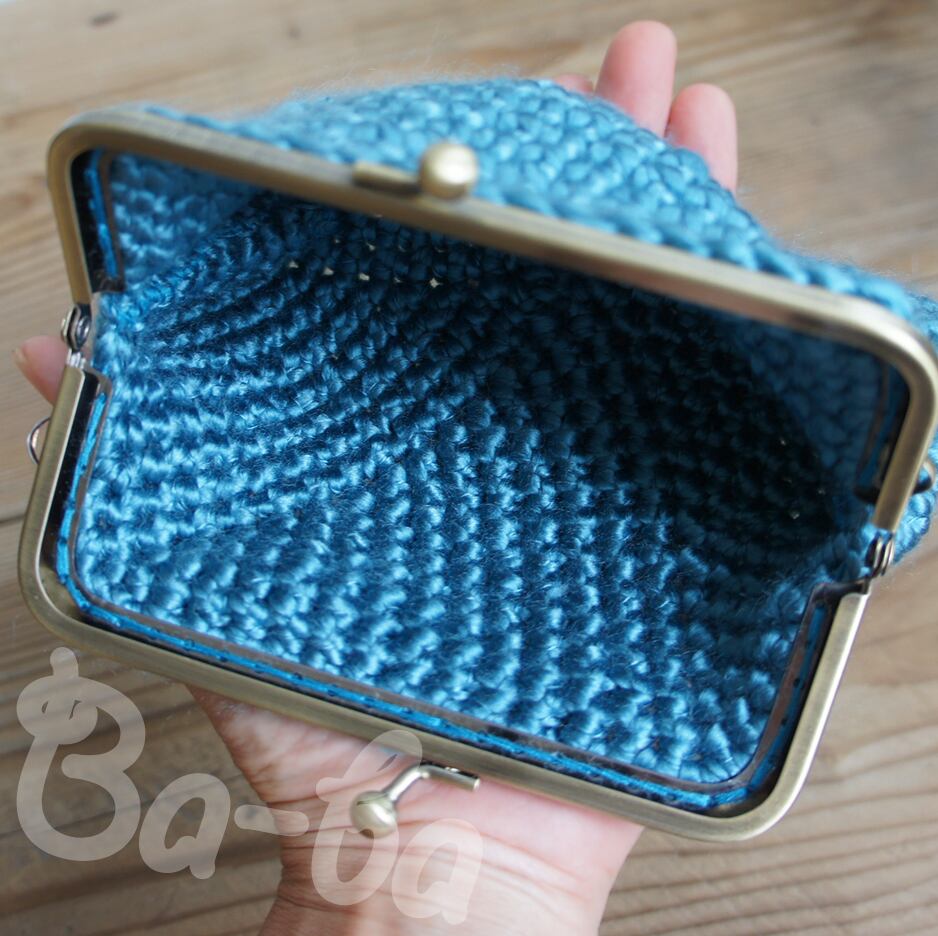 ばあば作♪さらに大きめスクエアがま口(ターコイズ・C1032)